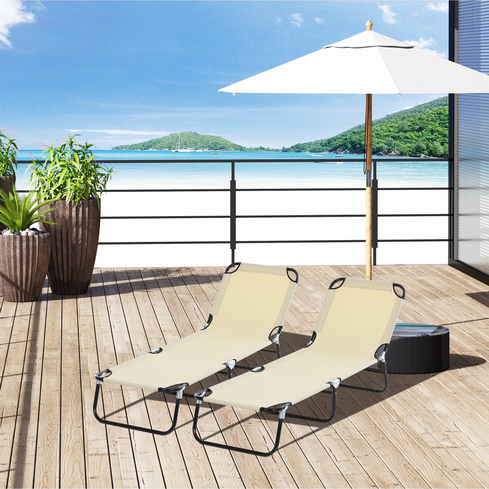 Outsunny 2-częściowy składany leżak z 5-pozycyjnym regulowanym oparciem, zewnętrzne przenośne leżaki z oddychającą siateczkową tkaniną, beżowy