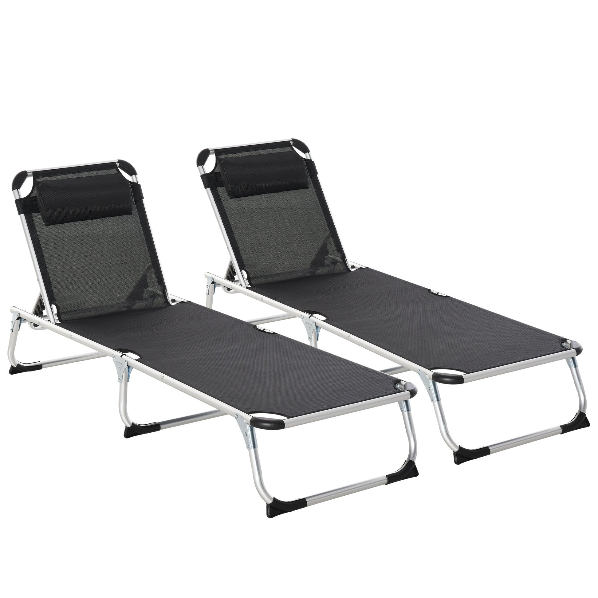 Outsunny 2-częściowy składany leżak ogrodowy z poduszką, 5-poziomowy regulowany leżak, aluminiowa rama, łóżko kempingowe, czarny