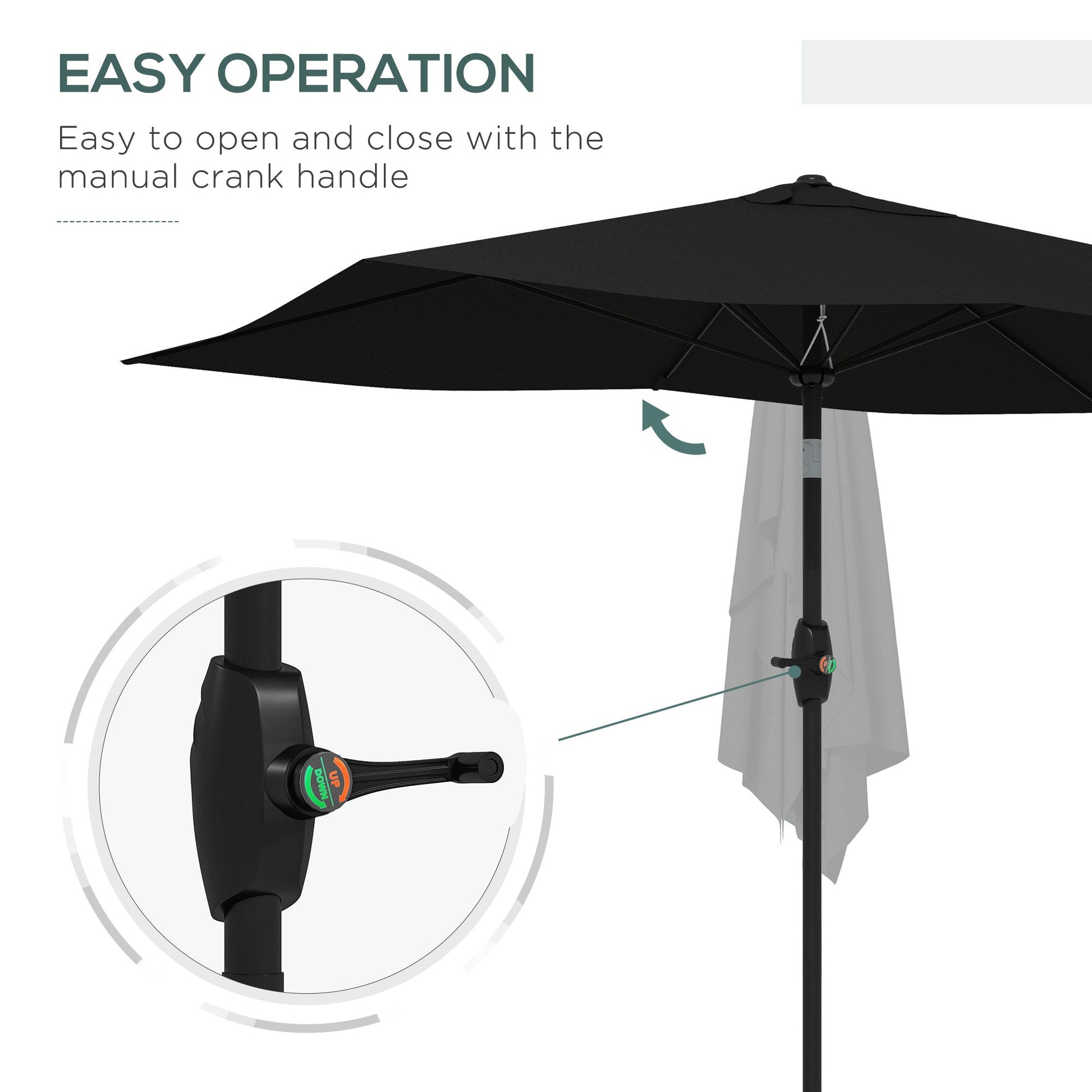 Outsunny 2 x 3(m) Parasol ogrodowy, prostokątny, z korbką i przyciskiem do odchylania, 6 żeber, aluminiowy słupek, czarny