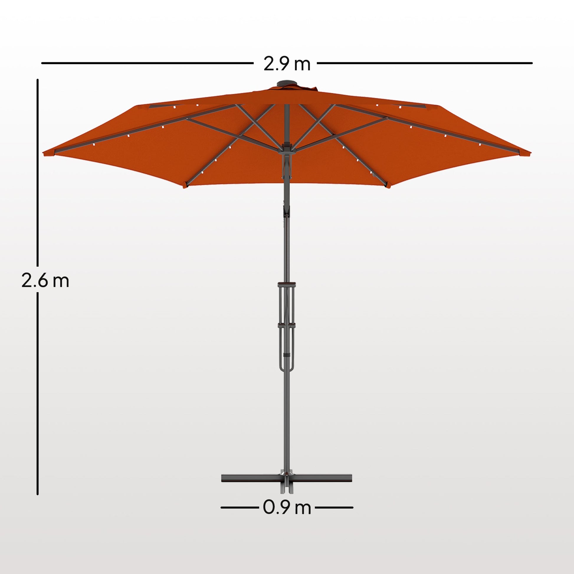 Outsunny 3(m) Solarny LED Cantilever Parasol - Pomarańczowy
