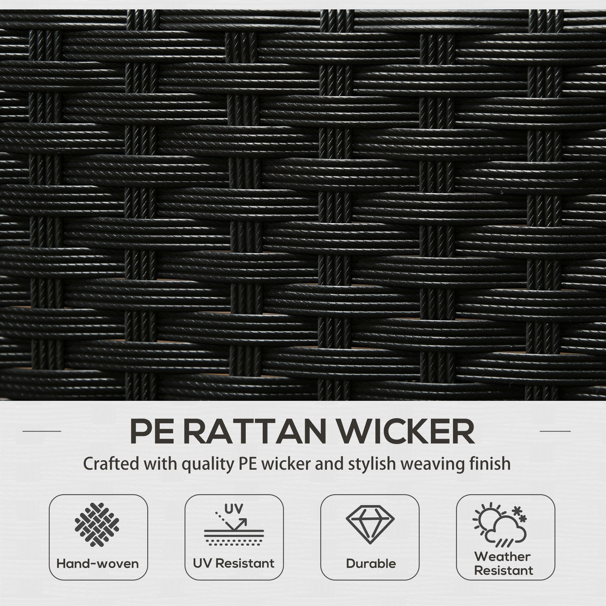 Twoje doskonałe towarzystwo do spotkań pod słońcem - powiedzmy dzięki temu ogrodowemu zestawowi sof rattanowych Outsunny. Każdy element ma mocną, malowaną proszkowo stalową ramę, która jest owinięta plastikową wikliną - stylowy wygląd rattanu, który również chroni stalową ramę. Zestaw zawiera dwa fotele, dwa podnóżki, trzyosobową sofę i pasujący stolik kawowy. Wszystkie siedzenia i podnóżki mają wyściełane poduszki dla wygody. Uwaga: do zbudowania tego zestawu potrzebne są dwie osoby.