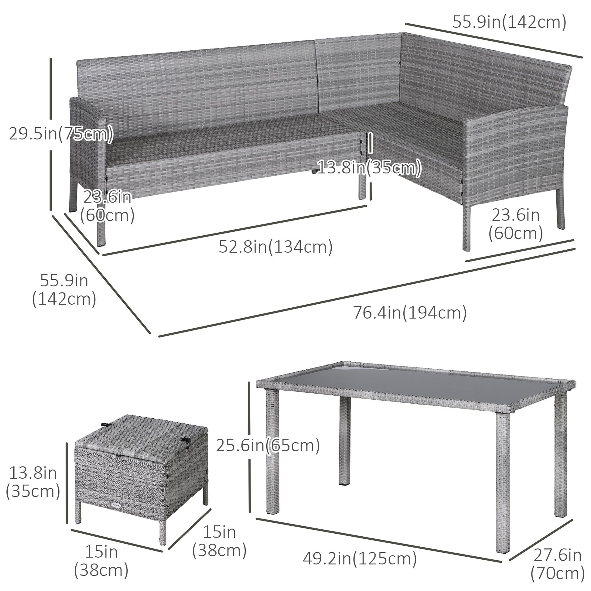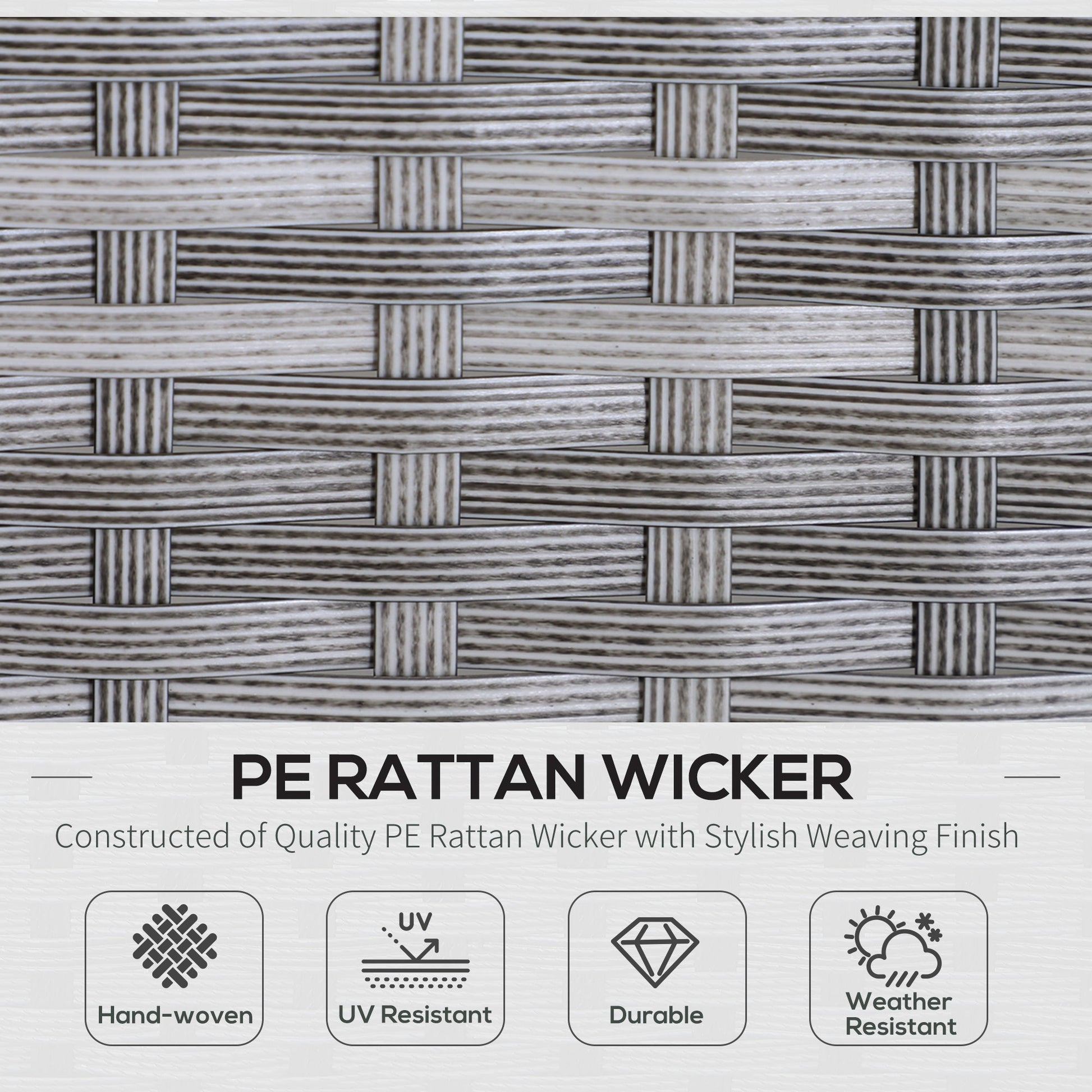 - Materiał: dwustronny rattan PE, stal, tkanina poliestrowa, bawełna, szkło hartowane