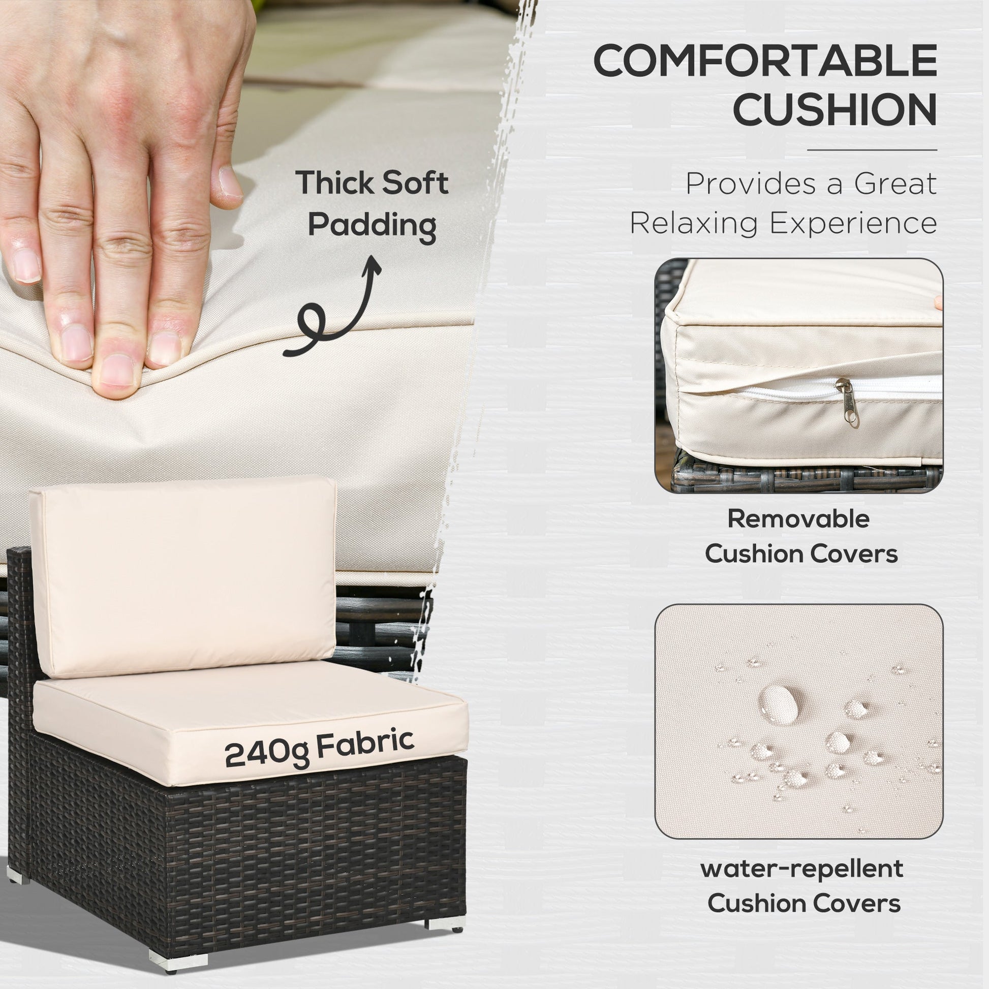 Wyróżnij swój ogród jak nigdy dotąd. Poznaj ten narożny zestaw wypoczynkowy Outsunny. Każdy element ma stalową ramę zapewniającą solidne podparcie, owiniętą wikliną dla podwójnej wytrzymałości; tworzy to ponadczasowy stylowy zestaw do Twojej przestrzeni na zewnątrz. W zestawie znajdują się dwa narożne siedziska, cztery standardowe siedziska, podnóżek i stolik – możesz ustawić go w dowolnym kształcie. Pikowane poduszki zapewniają wygodę, a cztery kolorowe poduszki dodają mu odważnego uroku.