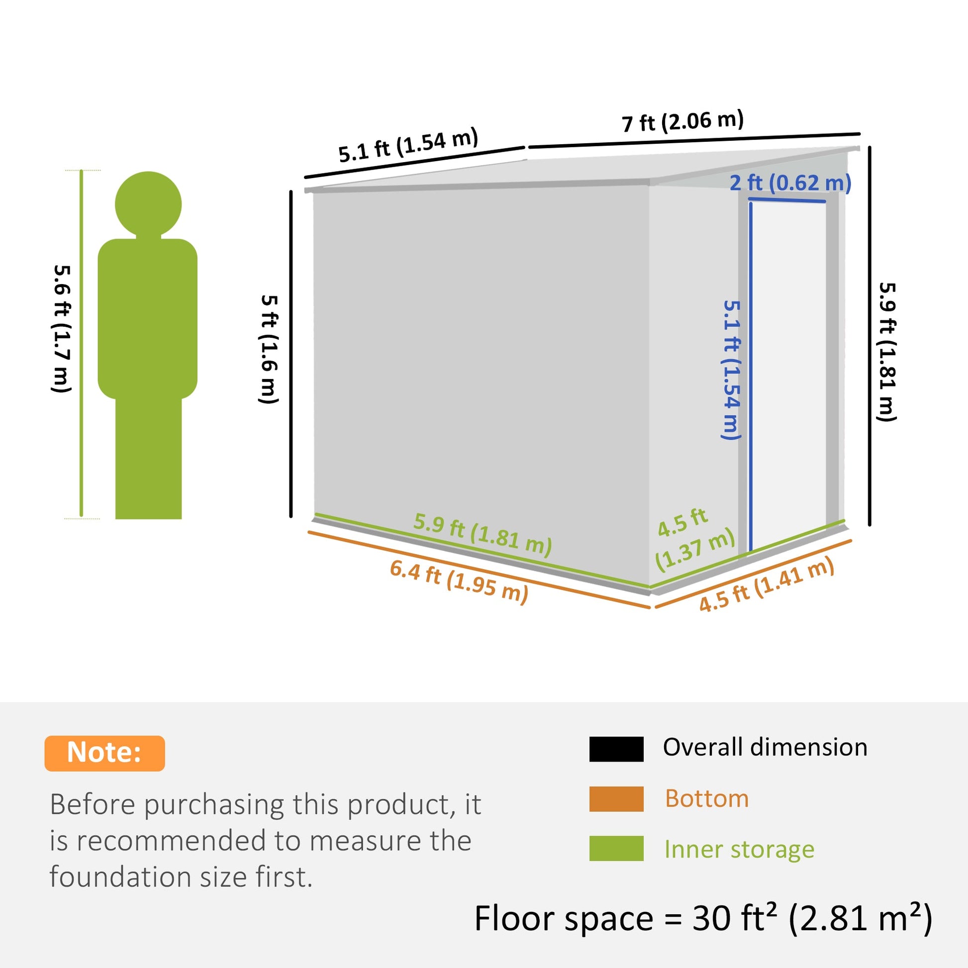 Dodaj miejsce do przechowywania w swojej przestrzeni na zewnątrz dzięki tej metalowej szopie Outsunny o wymiarach 7 x 5 stóp. Ocynkowana stalowa konstrukcja jest wytrzymała i nadaje się do użytku na zewnątrz. Otwory wentylacyjne zapewniają dopływ powietrza do środka, utrzymując świeżość w szopie. Wystarczająco pojemna, aby pomieścić narzędzia, dłuższy sprzęt i rower.