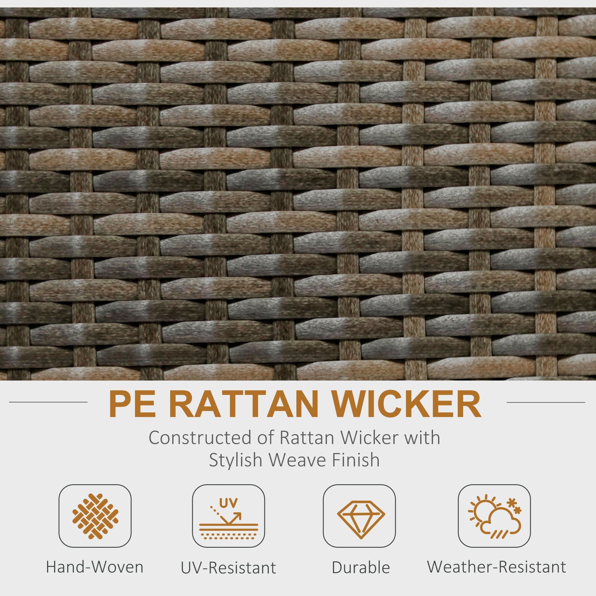 Zestaw wypoczynkowy Outsunny z 8 elementami z rattanu PE do użytku na zewnątrz z poduszkami, zestawy mebli ogrodowych z szklanym blatem, stolik kawowy, stolik narożny ze schowkiem, kolor brązowy