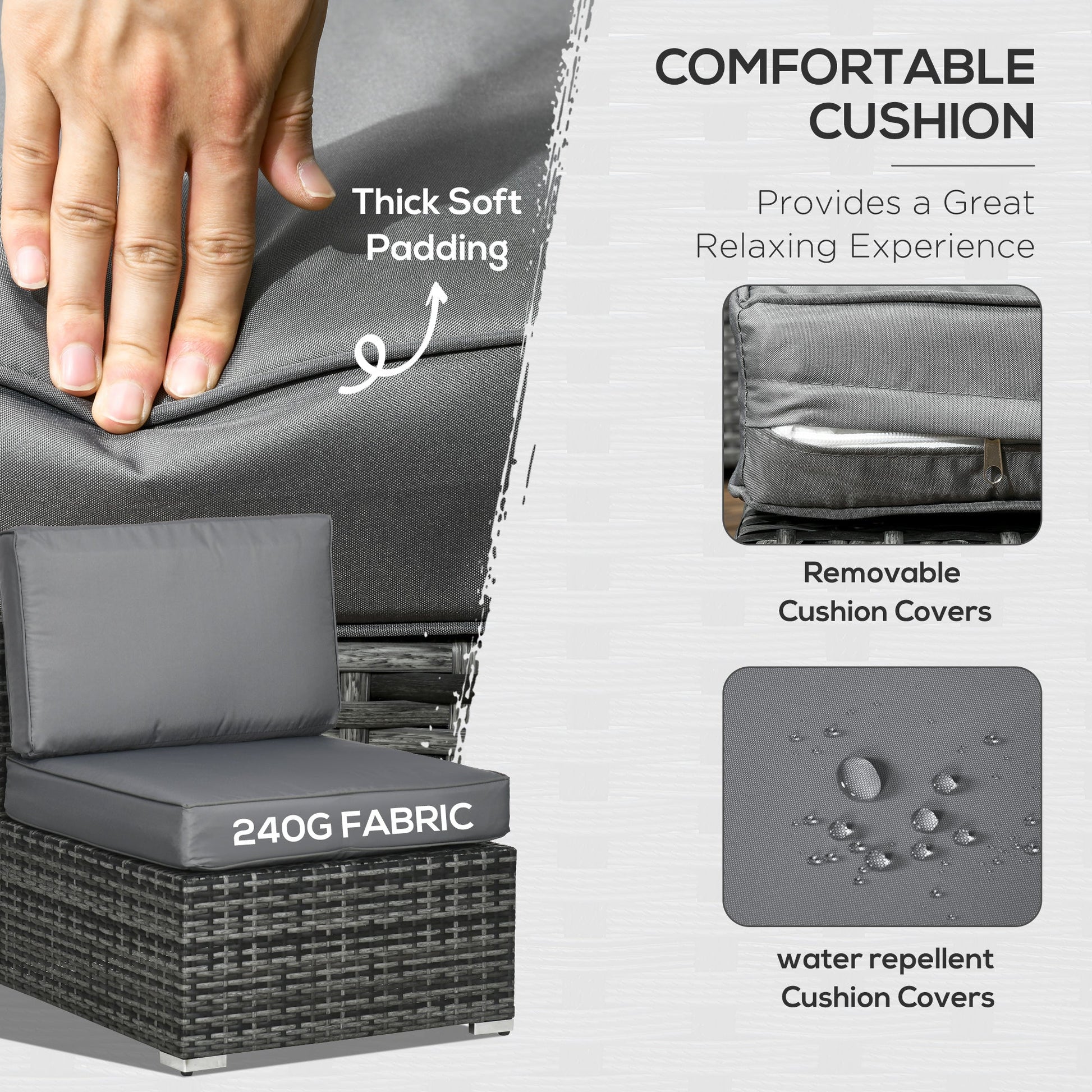 Zestaw mebli ogrodowych Outsunny z 8 narożnymi sofami z rattanu PE, zestaw mebli ogrodowych, sofa z wikliny ogrodowej z poduszką, zmywalnym pokrowcem na poduszkę i stolikiem ze szkła hartowanego, kolor szary