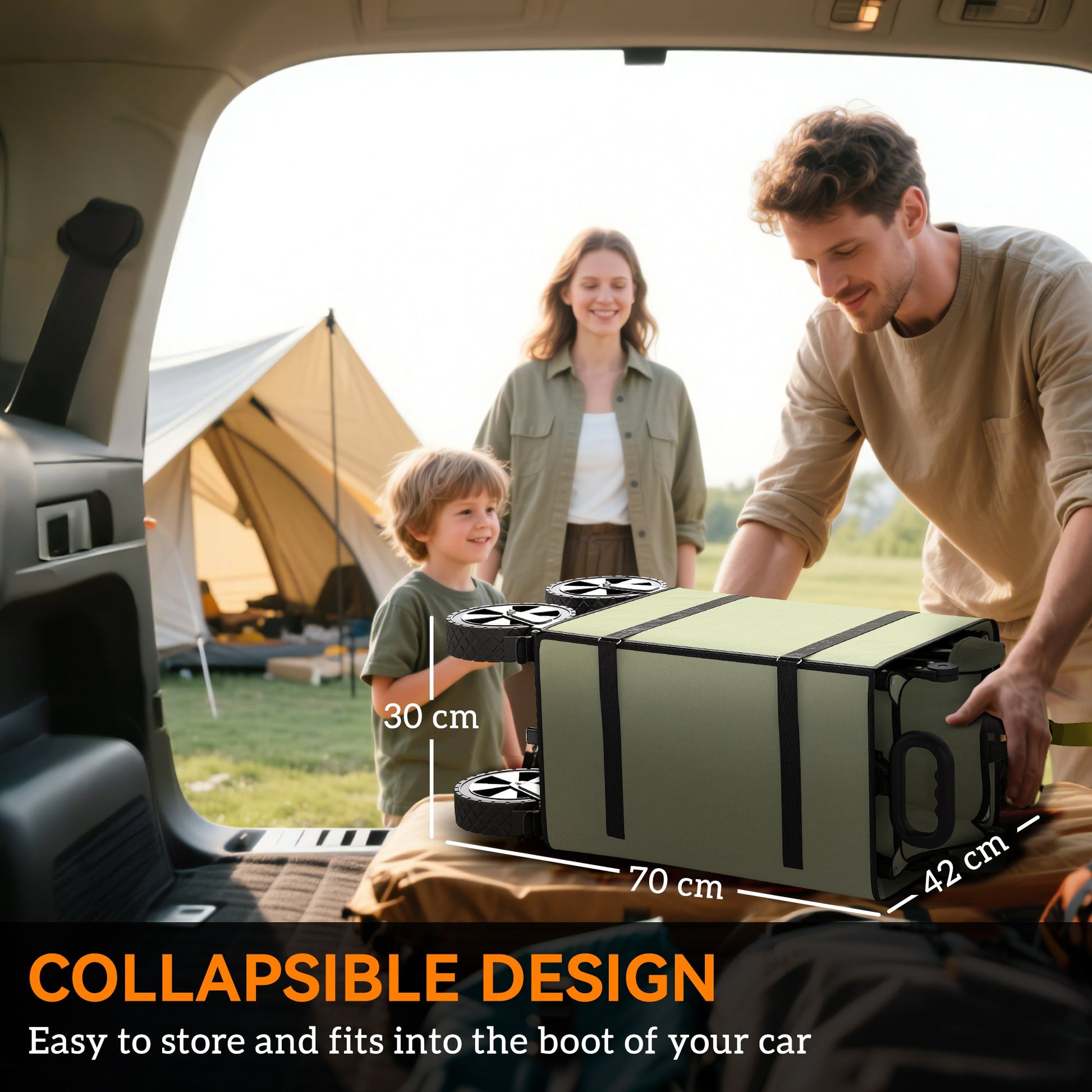 Outsunny składany wózek ogrodowy, 180L wózek z rozkładanymi ścianami bocznymi, na plażę, kemping, festiwal, khaki
