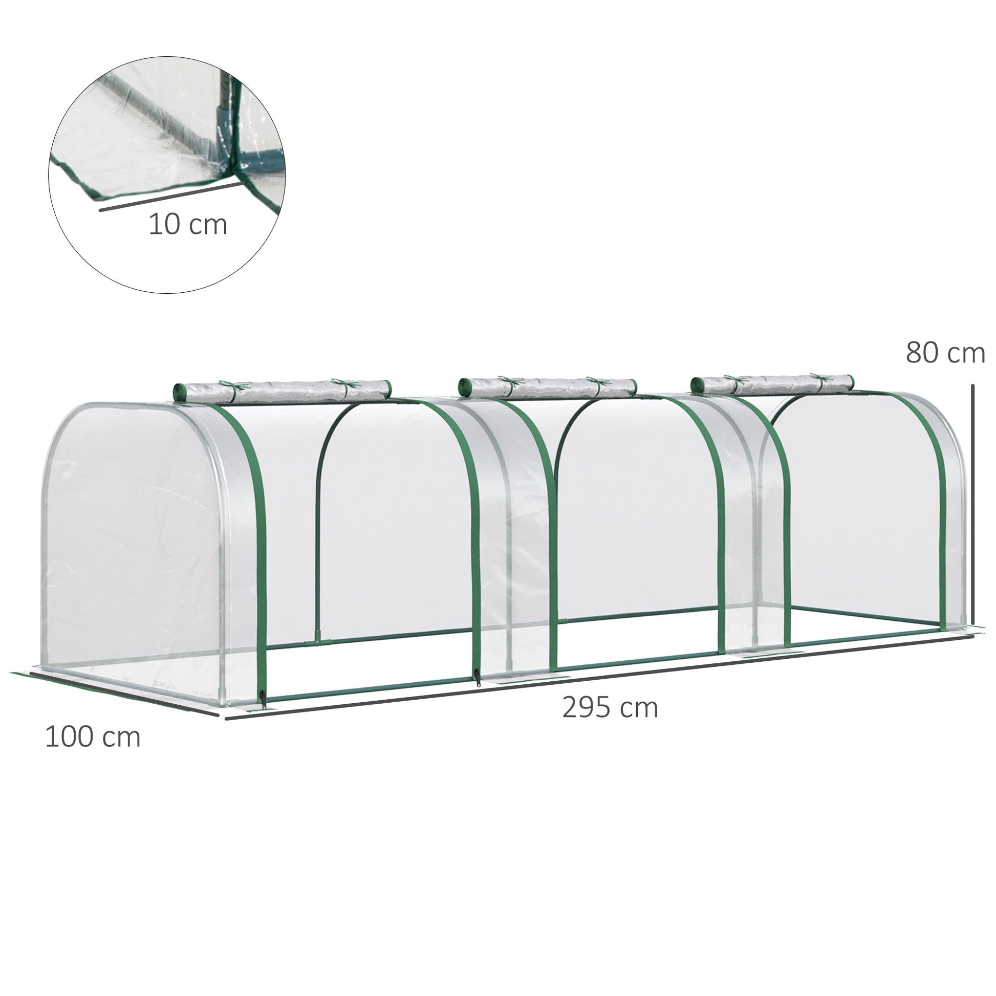 Outsunny PVC Tunnel Green Grow House Stalowa rama do ogrodu na podwórko z drzwiami na suwak 295x100x80 cm, przezroczysty