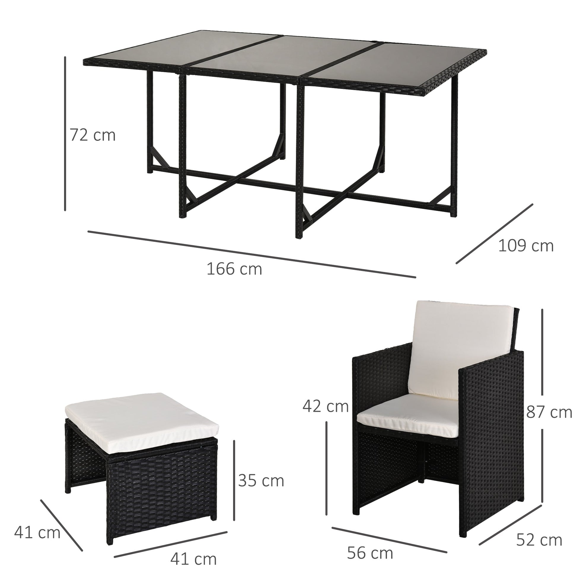 Outsunny Rattan Dining Set Garden Furniture Patio set 11 PC with Cushion Black /Milk White