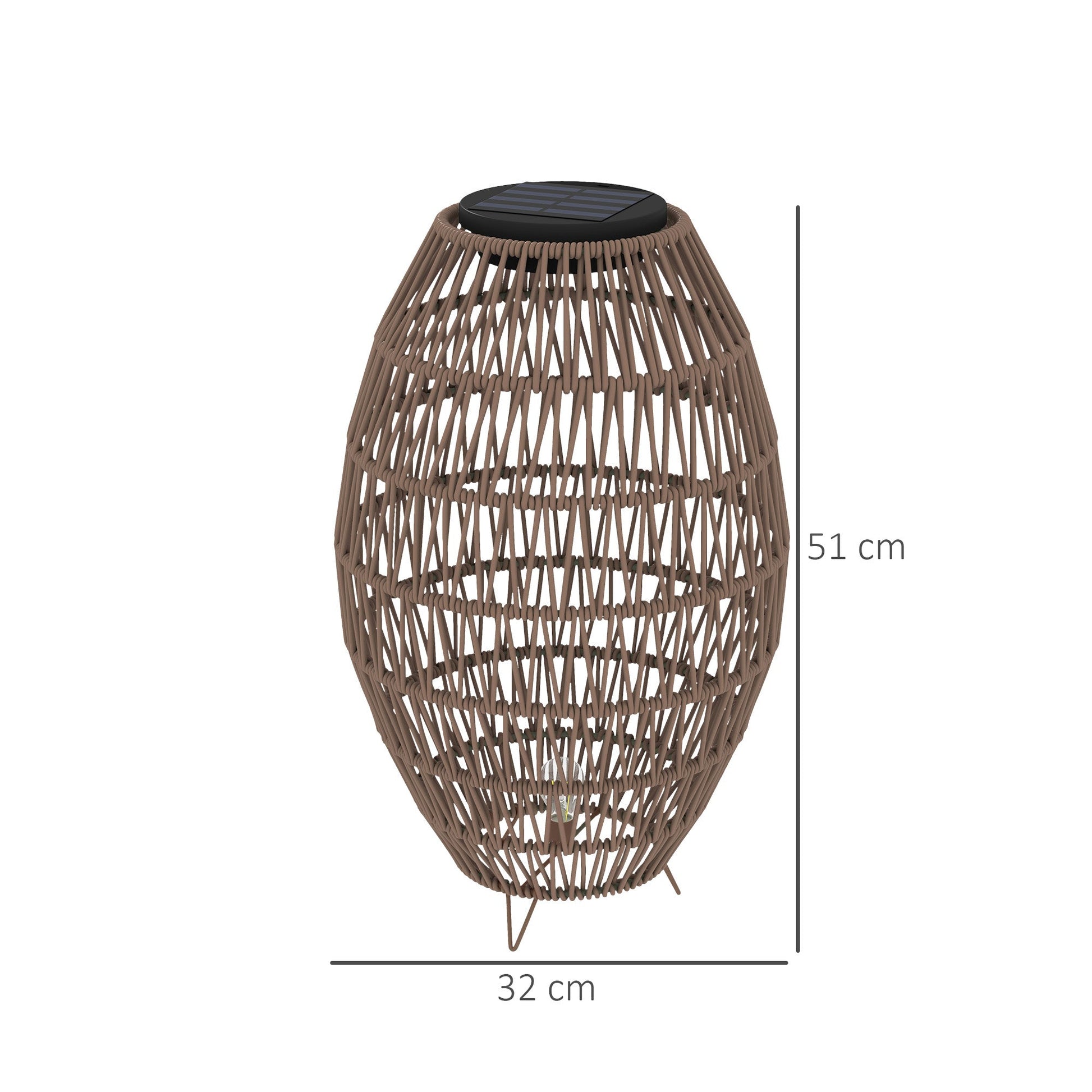 Rozświetl swoje wieczory z rattanową lampą stołową Outsunny, elegancką latarnią ogrodową, która ładuje się w ciągu dnia i rozjaśnia nocą bez dodatkowych baterii. Elegancka rattanowa lampa stołowa o delikatnym blasku 6 lumenów i temperaturze barwowej 2500 K, która stworzy przyjazną atmosferę podczas każdego spotkania na świeżym powietrzu. W pełni zasilana energią słoneczną lampa stołowa ogrodowa – prosty sposób na oświetlenie ścieżek lub podjazdów przyjemnym blaskiem. Pięć godzin pełnego ładowania = osiem godzin światła.