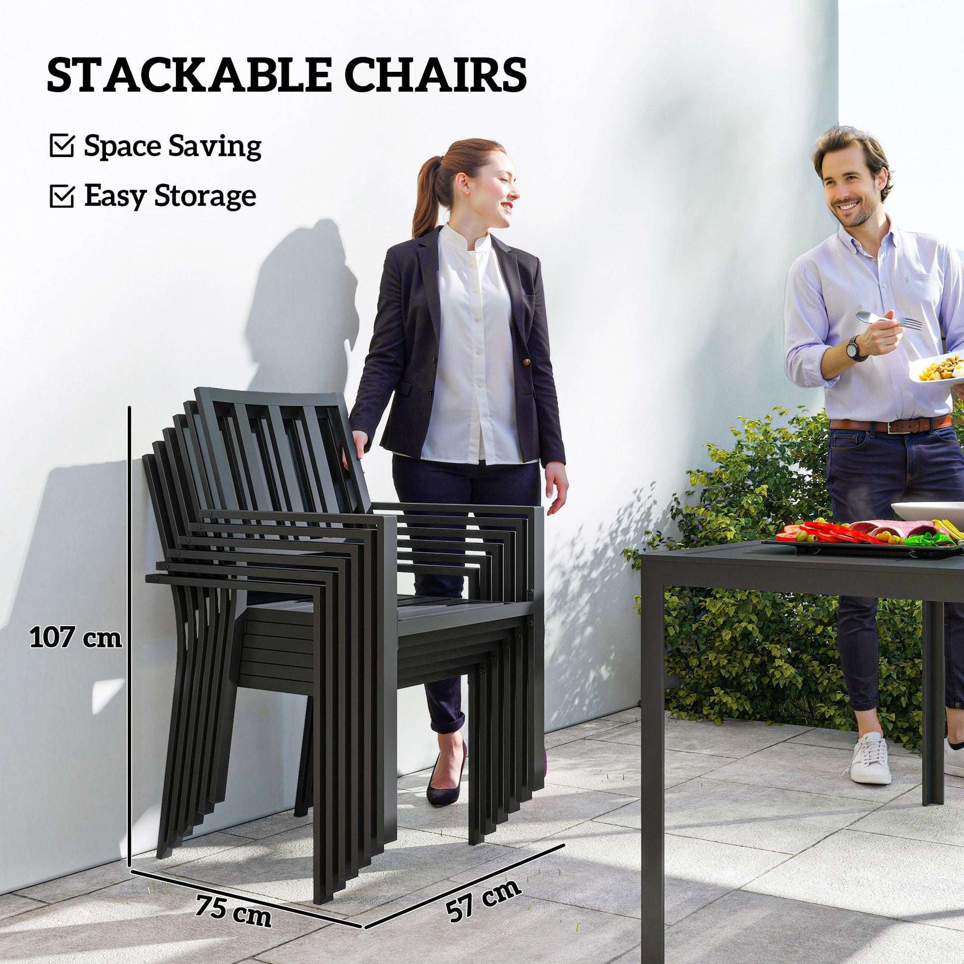 Outsunny Siedmioczęściowy minimalistyczny metalowy zestaw ogrodowy z otworem na parasol - czarny