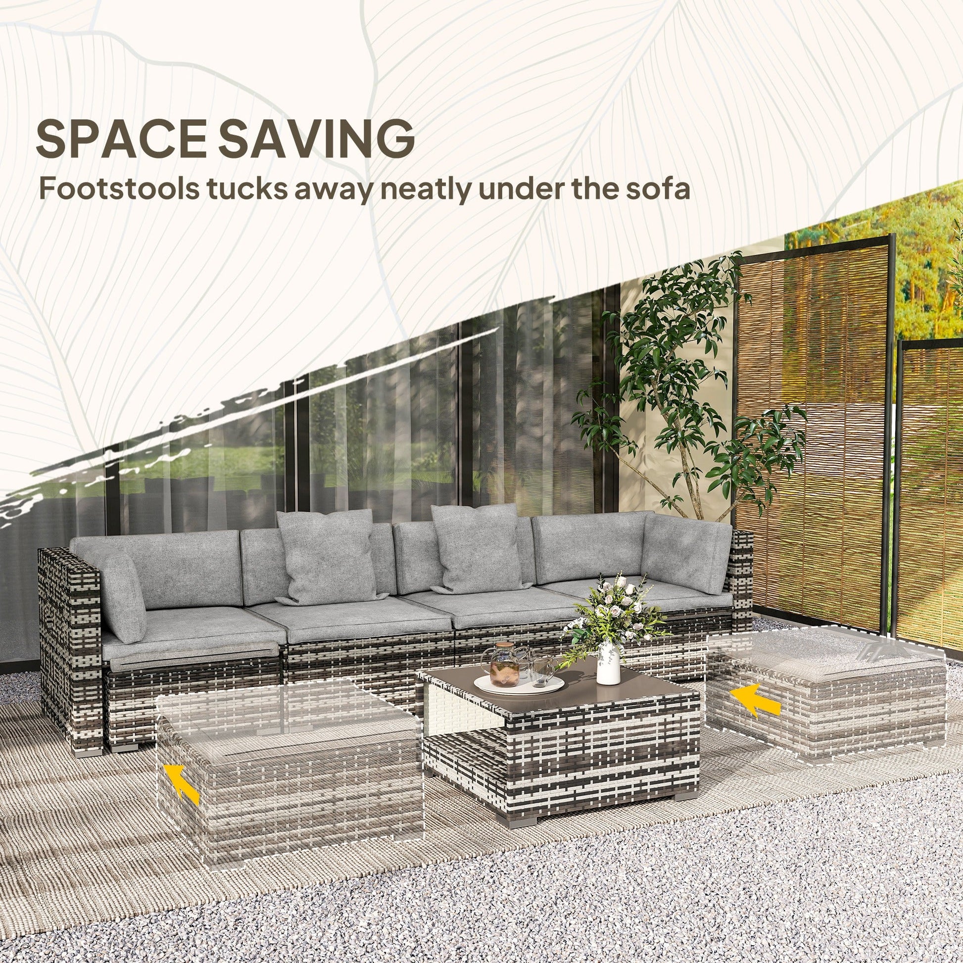 Zestaw mebli ogrodowych Outsunny z rattanu, 7 elementów, z poduszkami, szary