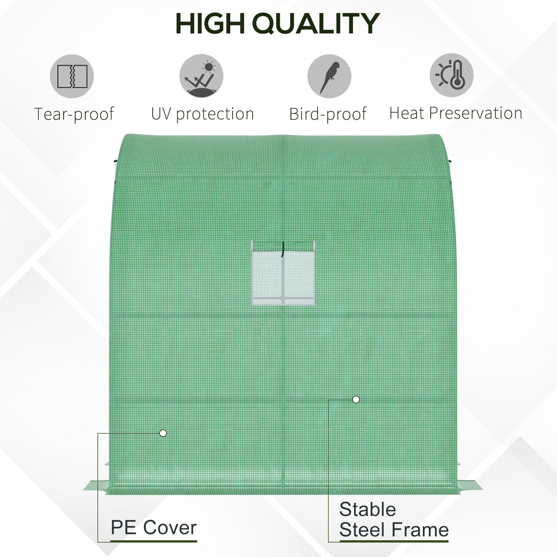 Ta szklarnia Outsunny walk-in garden nadaje się do ogrodnictwa domowego. Szkółka roślin oferuje całą ochronę, jakiej potrzebują Twoje rośliny, aby się rozwijać. Zawiera ramę i osłonę z PE, która ochroni Twoje rośliny i warzywa przed żywiołami. Okna mają wewnętrzną siatkę, aby zapewnić wentylację w całej szkółce roślin. Nasza szklarnia Outsunny sprawi, że Twoje rośliny będą szczęśliwe i zdrowe przez cały rok.