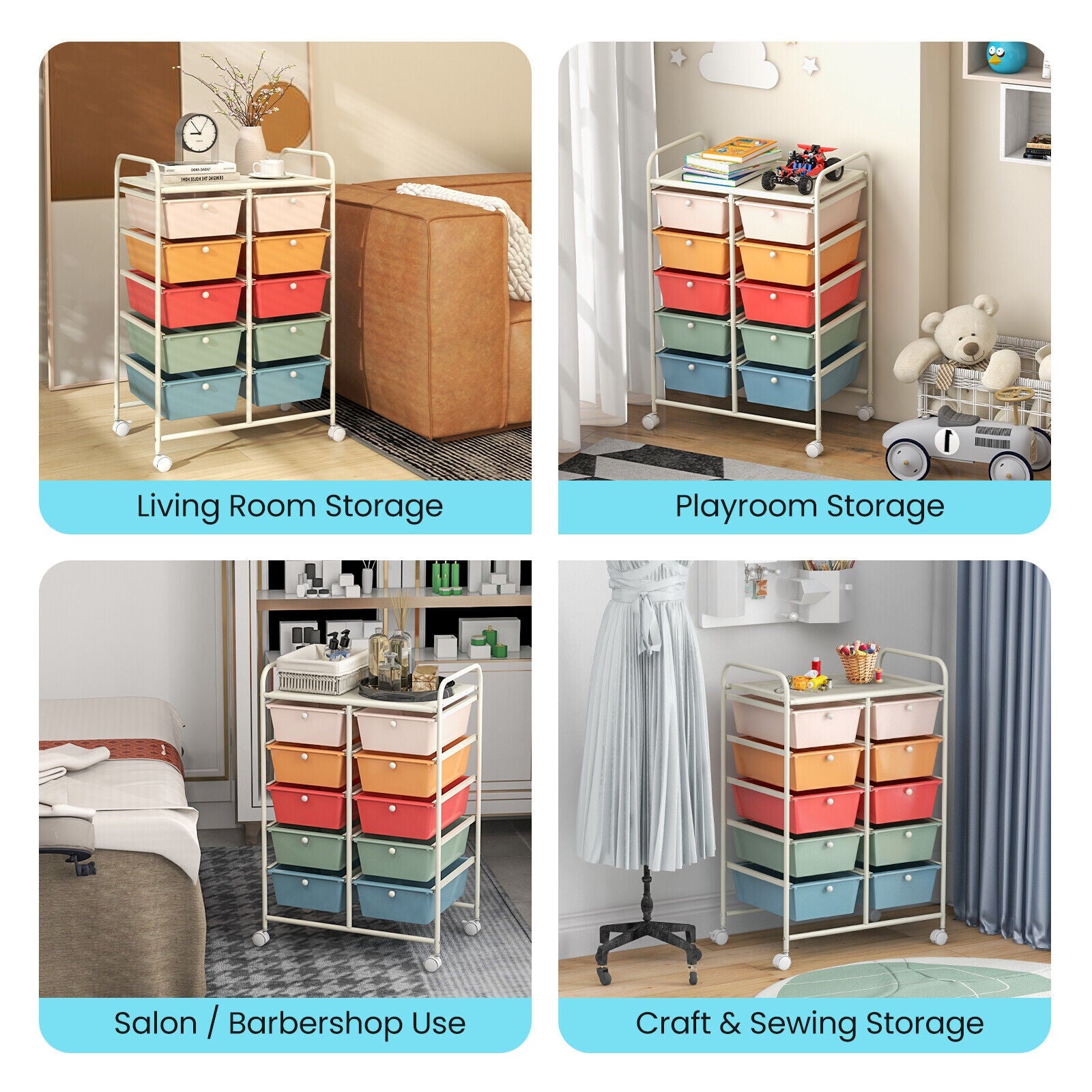 10-Drawer Rolling Storage Cart-Multicolor