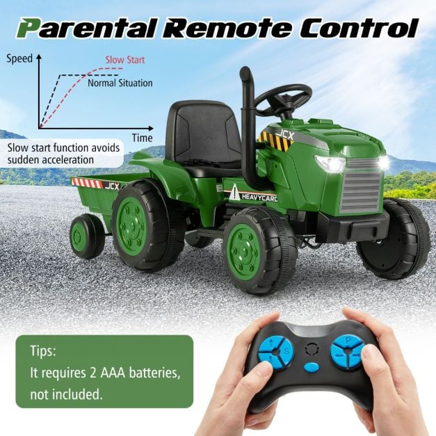 12V Kids Ride On Tractor with Trailer with Remote Control and Lights and Horn-Dark Green