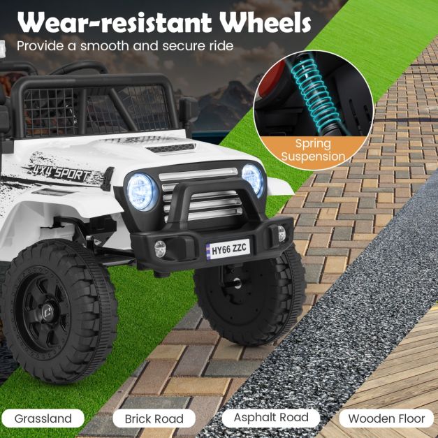 12V Kids Ride on Truck Car with Remote Control and LED Lights-White