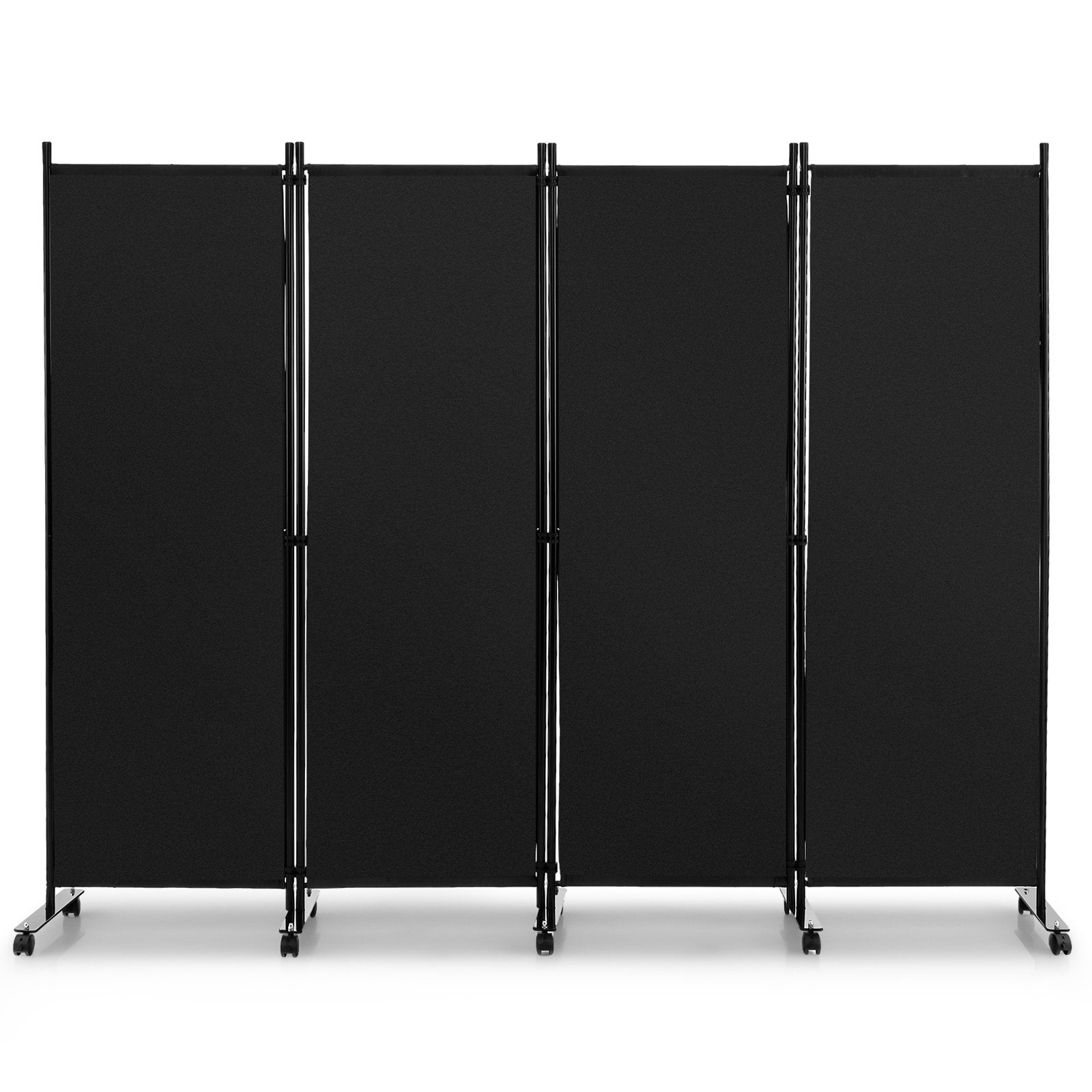 4-Panel Folding Room Divider with Wheels for Living Room Bedroom -Black