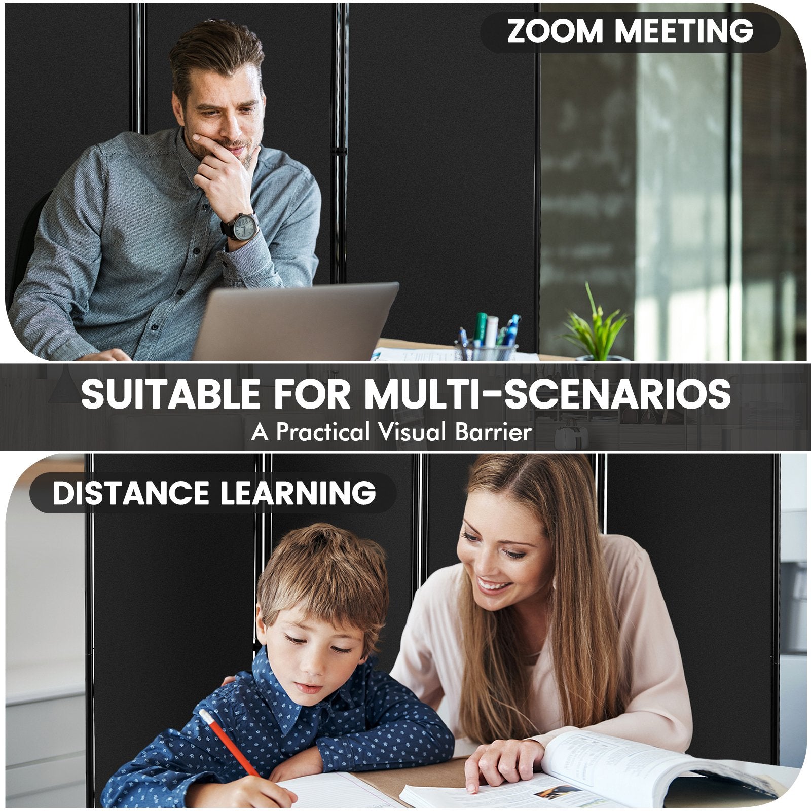 Looking for a room divider that's easy to move around? Check out this great 3/4-panel privacy screen! The frame of the folding room divider is made of sturdy metal for good stability. In addition, the surface of the room screen divider is made of breathable fabric, which is wear-resistant and will not transmit light. Meanwhile, the room divider comes with ten lockable universal wheels, allowing you to move it freely. Each panel can be used individually or combined together with connecting clasps for easy storage or transportation. If you are looking for a room divider like this, do not hesitate to place an order! 4-Panel Room Divider: This folding room divider consists of 3/4 panels that together are 260x180cm(3 Panel)/224x172cm(4 Panel). No matter where you are, you can create a private space when you unfold the panel screen. Its large screen allows you to isolate yourself from the unavoidable distractions in public areas so you can focus on your work or study. Lockable Universal Wheels: This office wall partition has 8/10 universal wheels that allow you to move the privacy screen anywhere without difficulty. 4cm wide casters provide better stability and weight-bearing capacity. In addition, the wheels of the room screen are equipped with brakes, so you can lock the wheels to secure the panel room divider. Folding Design for Free Combination: You can use this portable screen divider as 3/4 single units, or you can connect them with the included connecting clasps to form a large one. The folding screen can be folded 360 degrees or flexibly arranged into various shapes according to your personal needs: such as L-shaped, W-shaped, C-shaped, etc. Durable Material: The panels of this privacy separator with wheels are made of high quality polyester fabric, which allows air circulation without letting light in. The frame and base made of metal are strong enough and rust-proofed for long-lasting use. Moreover, both the screen and the frame are detachable for easy storage. Wide Range of Applications: Apart from being used as a partition in the living room or bedroom, our privacy divider with wheels also have a wider range of uses. You can place the room divider next to a window to block the sun, and you can also create a temporary privacy space for overnight guests. It is also a practical and easy to set up background for remote video conferencing.