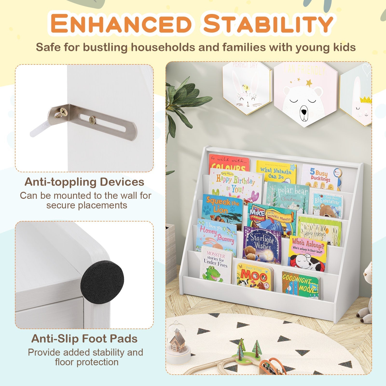 5 Tier Kids Bookshelf with Anti-Toppling Devices for Kids Room-White