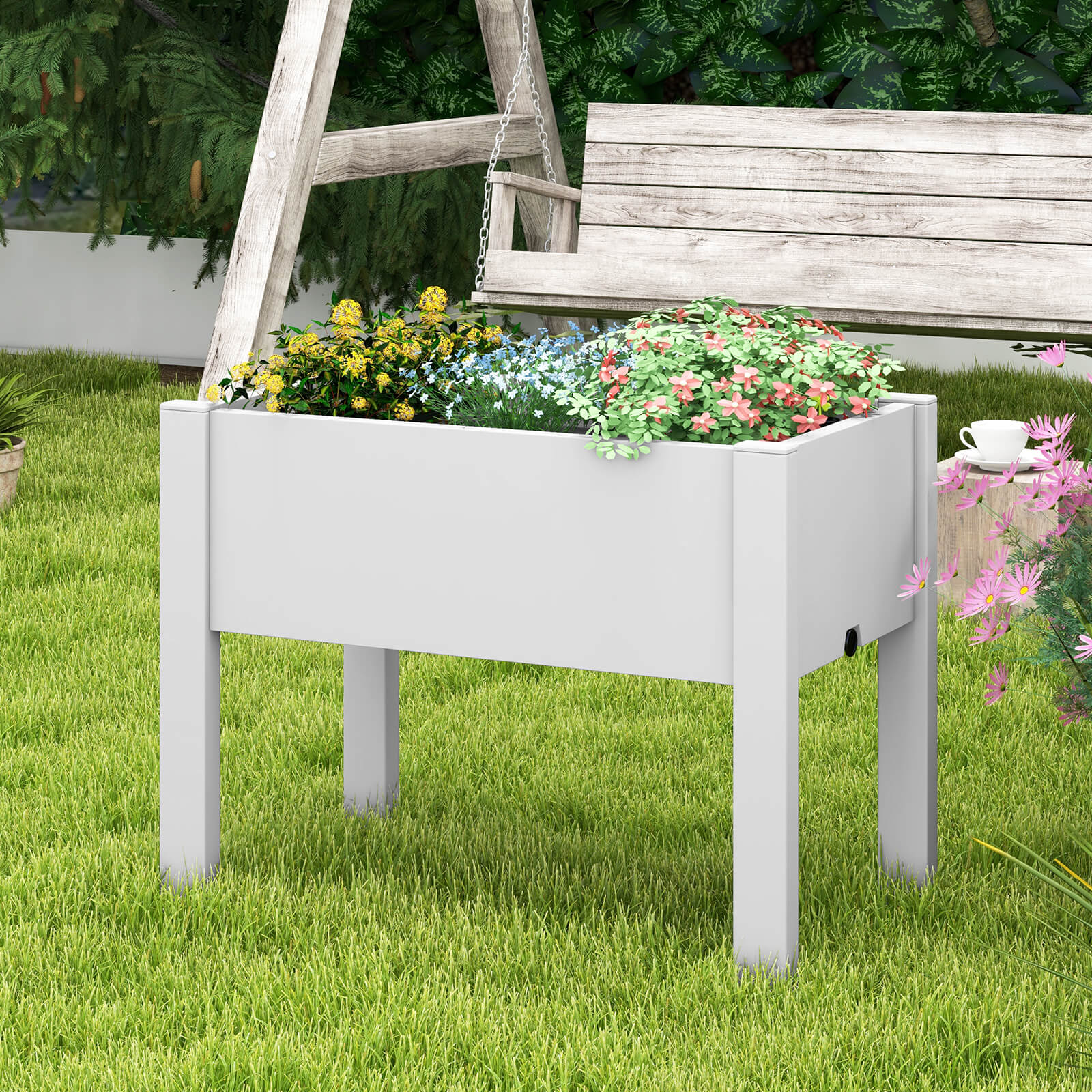 53L Raised Bed Grow Box with Water Level Monitor and Drainage Hole-White