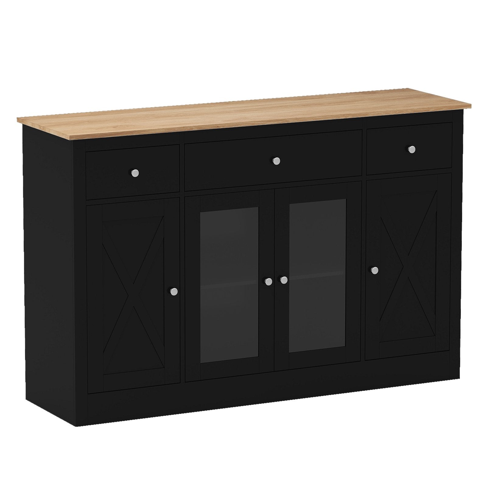 Looking for storage that’s as stylish as it is functional? This 140 cm buffet sideboard delivers both, featuring 3 smooth-gliding drawers and 3 spacious cabinets—including a glass-front central one to elegantly display your favorite dishware. The generous top surface doubles as extra counter space, while 3-level adjustable shelves let you customize storage for anything from canned foods to small appliances. Built with sturdy construction and including anti-tipping kits for added safety, the versatile cabinet transitions effortlessly from dining area to living room as a chic console or bar cabinet. Your clutter-free home starts here with our sideboard buffet cabinet! Large Storage Space: This 140 cm buffet sideboard features 3 drawers and 3 cabinets, including a large central cabinet with see-through doors for displaying your tableware. The spacious cabinet top is perfect for kitchen appliances, and works as an extra prep space. Customizable Shelves: Customize the inner space of the buffet cabinet to meet your storage needs with 2 adjustable shelves, each offering 3 height settings spaced 6.5 cm apart. The flexible setting makes it easy to organize items of different sizes, keeping everything tidy. Versatile Storage Cabinet: Featuring a chic two-toned design, the modern storage cabinet adds an elegant touch to any kitchen or dining area. With its versatile design, it also works perfectly as a coffee bar, console table, or display cabinet in your living room or study. Enhanced Quality and Stability: The kitchen buffet cabinet features a sturdy, thickened top for enhanced durability. For added safety, it is equipped with 2 anti-toppling devices, so that the cabinet stays safely anchored to the wall with no risk of tipping over. Reliable Design: Highlighted by round door knobs and quality metal hinges, the coffee bar cabinet ensures longevity and smooth usability. The low-maintenance surface makes cleaning easy and fuss-free, keeping the sideboard looking new for years.