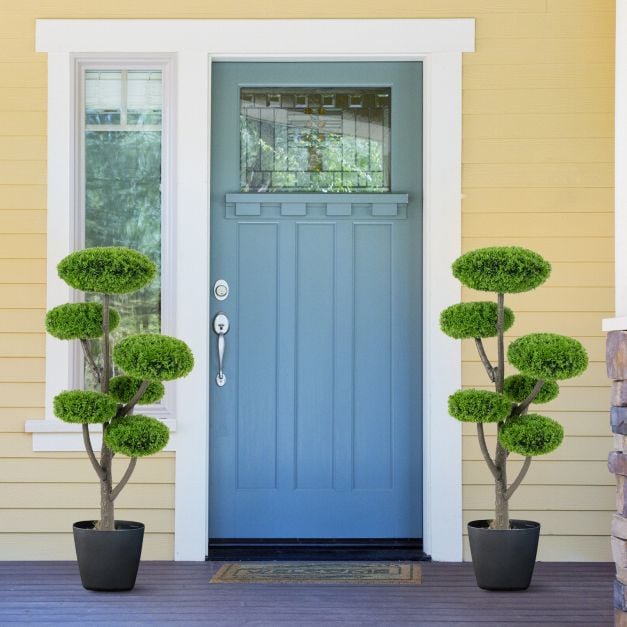 6 Ball Artificial Cypress Topiary Ball Tree with Weighted Pot for Porch