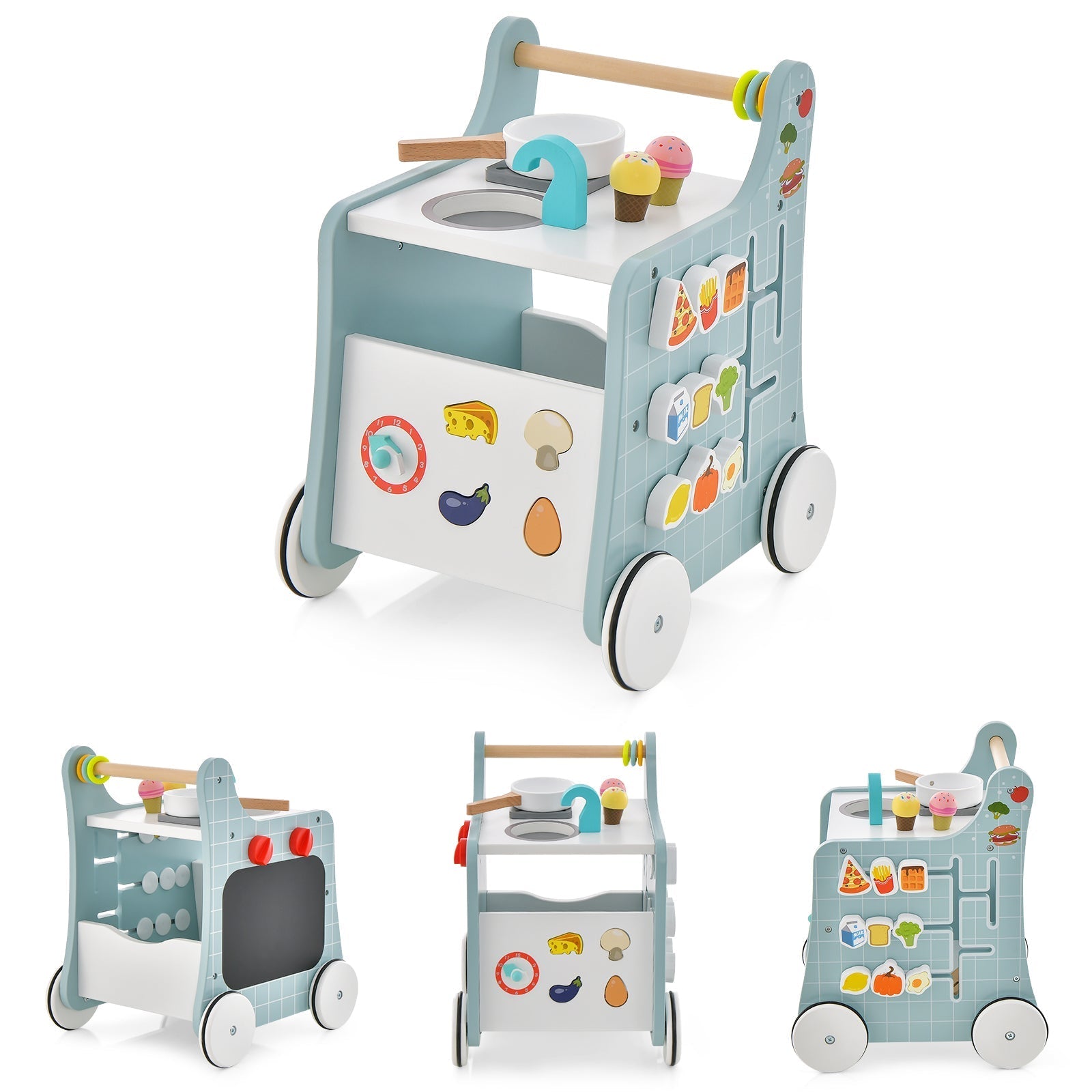 6-in-1 Wooden Baby Stroller Push and Pull Learning Activity Center-Blue