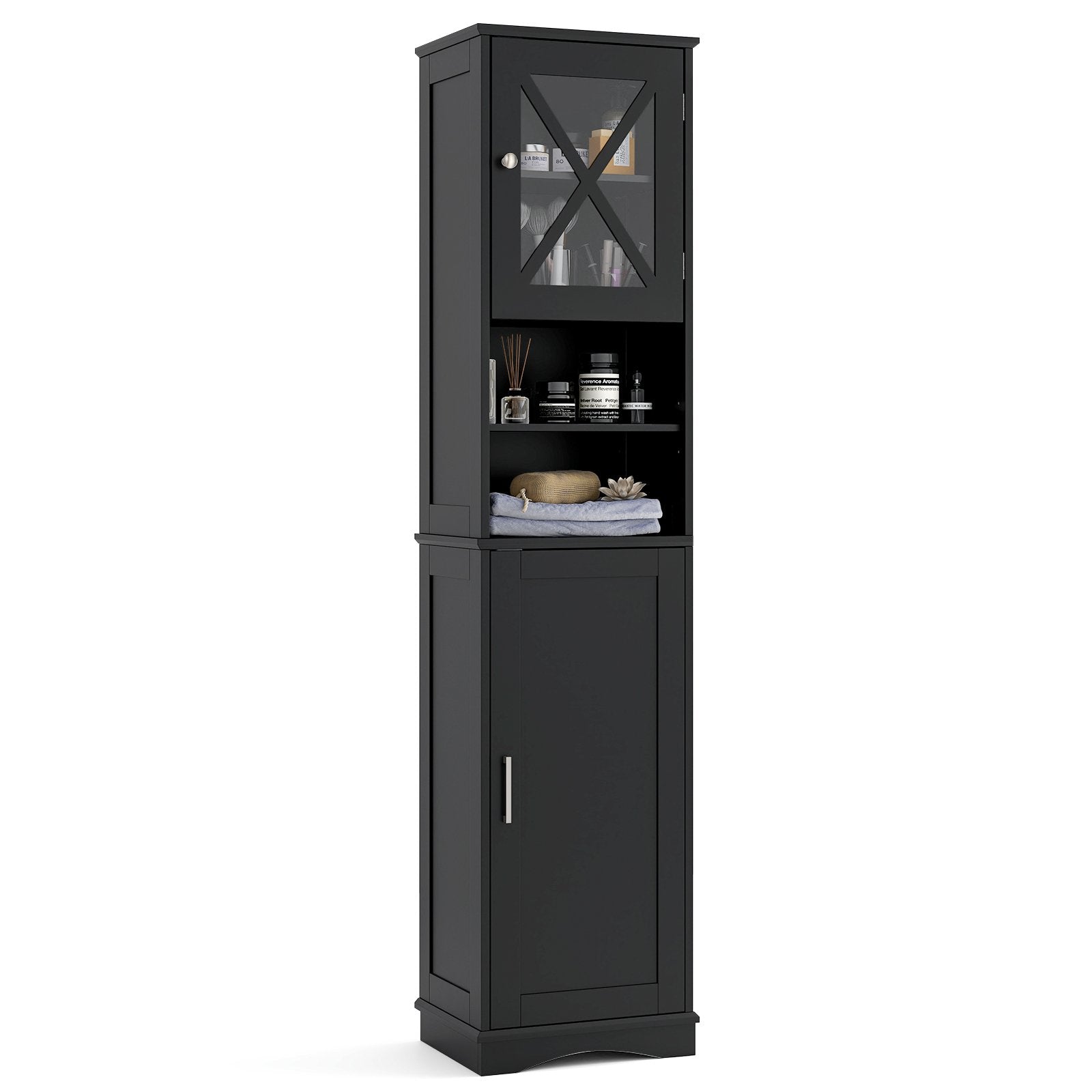 67 Inch Floor Storage Bathroom Cabinet with 5 Adjustable Shelves-Black