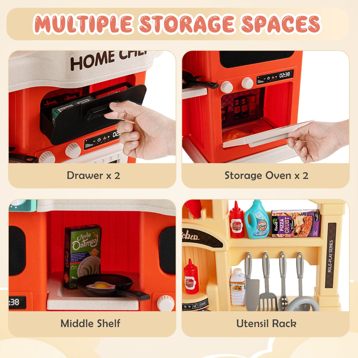 69 Pieces Kitchen Playset Toys with Realistic Lights and Sounds-Orange