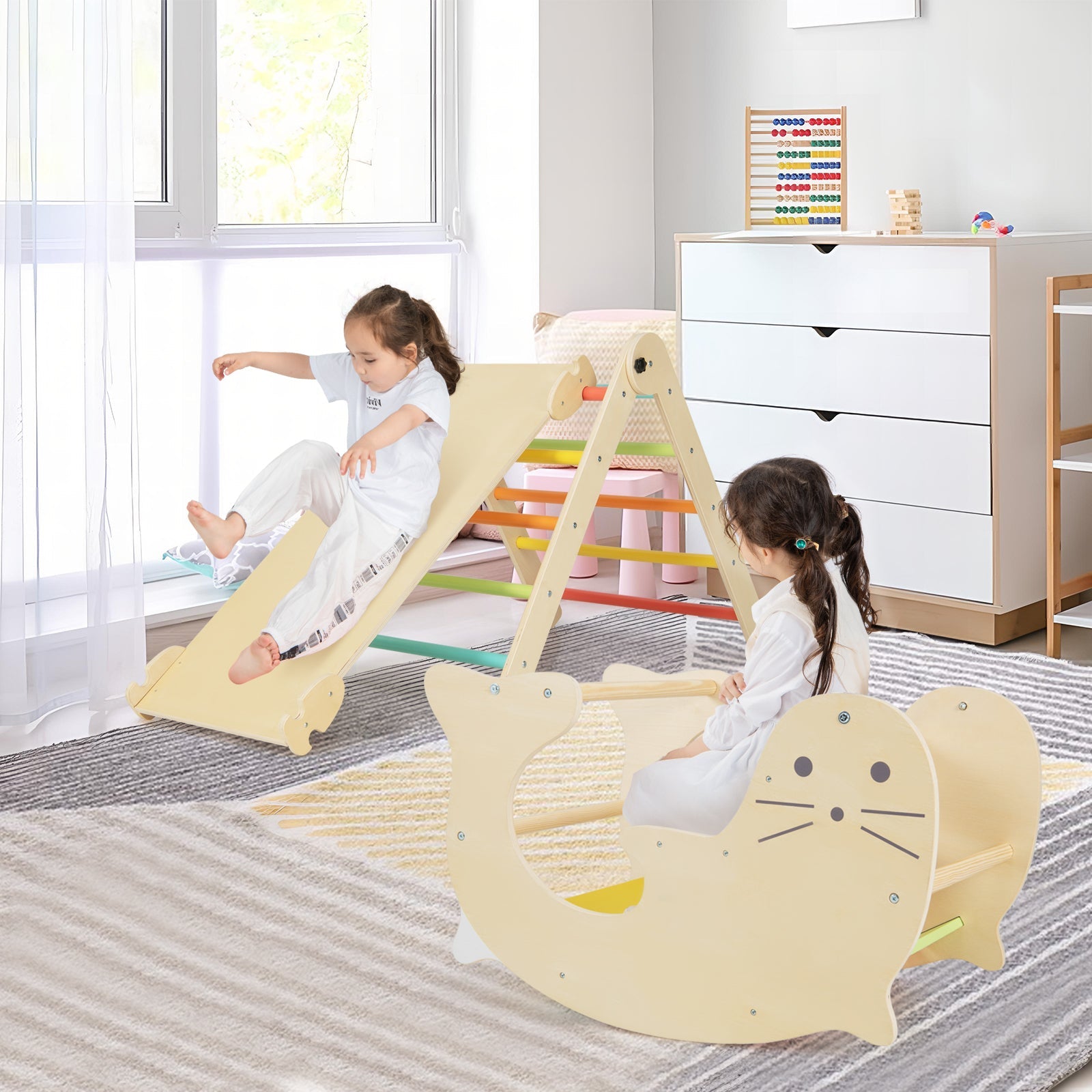 7-in-1 Indoor Wooden Foldable Climbing Toys for Toddlers-Multicolor