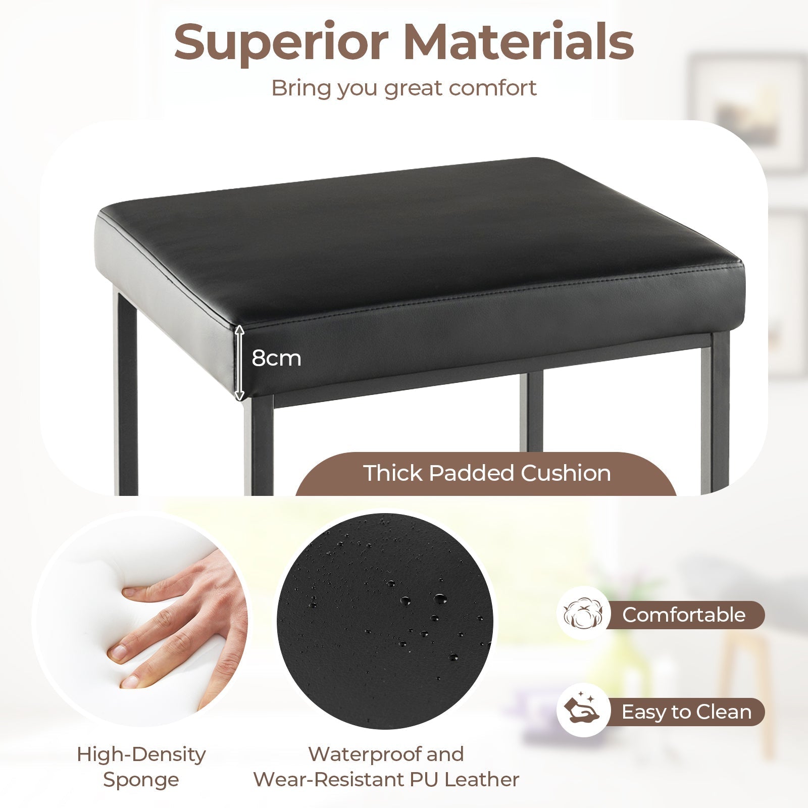 76 cm Barstools Set of 2 with PU Leather Cover and Footrest-Black