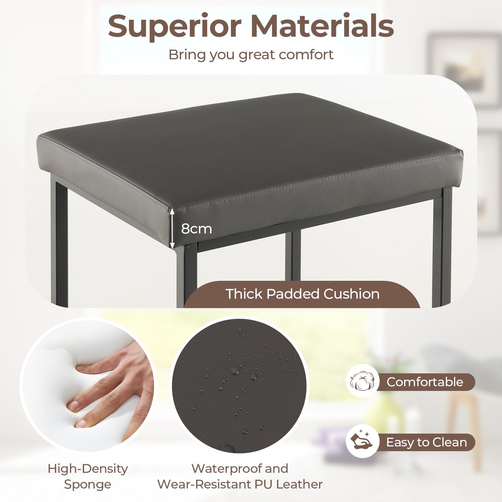 76 cm Barstools Set of 2 with PU Leather Cover and Footrest-Grey