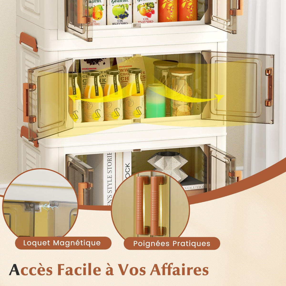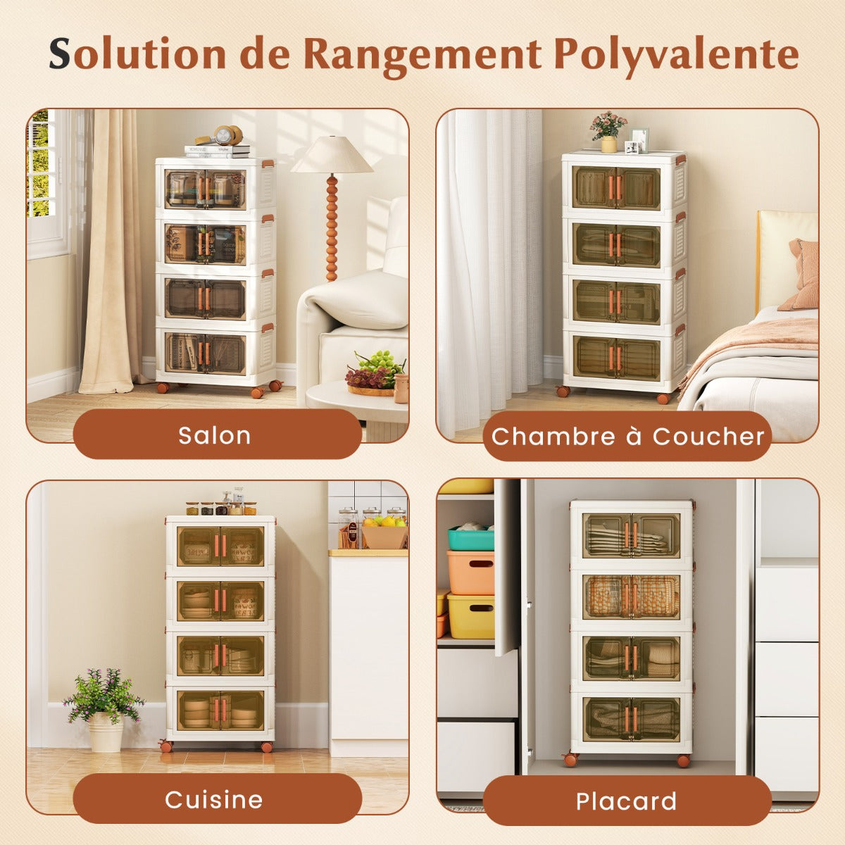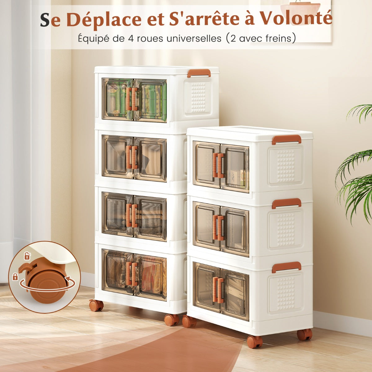 76L Collapsible Storage Bins with Lids Set of 4 Stackable Plastic Storage Boxes with Wheels White Storage Containers