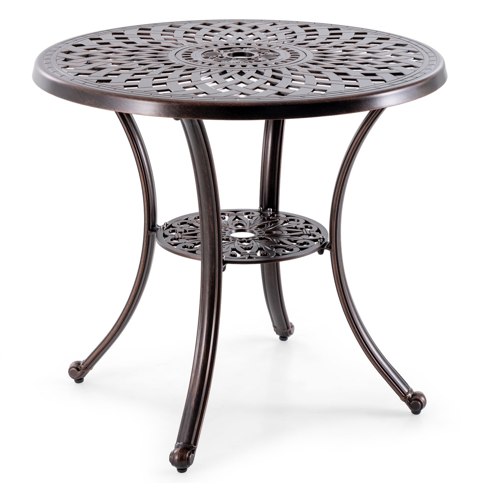 79 cm Patio Cast Aluminum Table with Umbrella Hole and Bottom Shelf-Copper