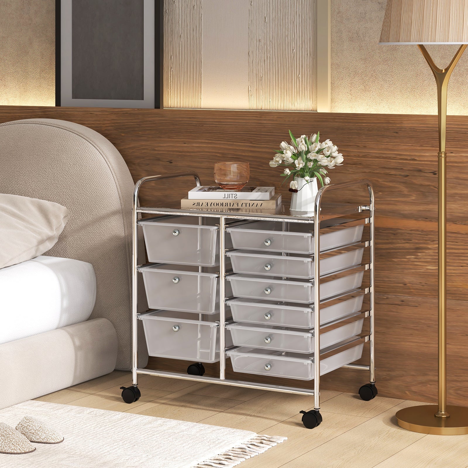9-Drawer Rolling Storage Cart Tools Scrapbook Paper Organizer-Transparent