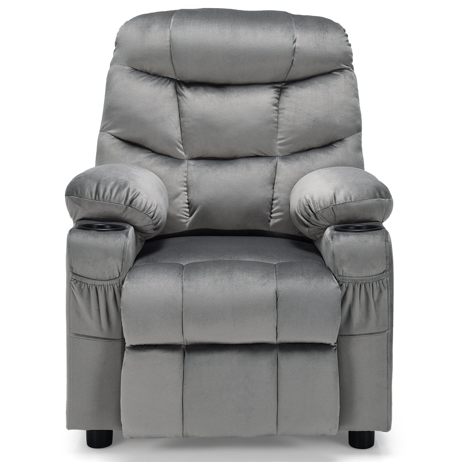 Adjustable Larger Kids Lounge Recliner Chair with 2 Cup Holders-Grey