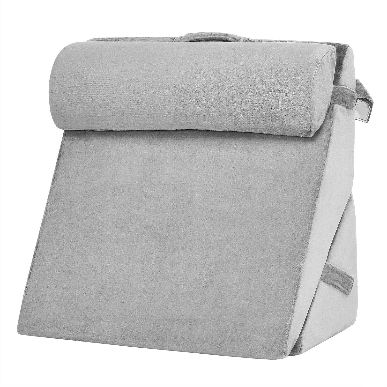 Color: Grey/White Material: Memory Foam, Fabric Size of Wedge Pillow:23"(L) x12.5"(W) x21.5"(H) Size of Headrest:23"(L) x7.5"(W) x3.5"(H) Net Weight: 7 lbs Package includes: 1 x Wedge Pillow 1 x Neck Support