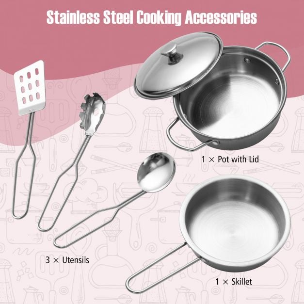 Color: Pink Materials: MDF, plastic Product dimension: 70 x 29 x 95/99/101 cm (L x W x H) Width of counter: 68 cm Height of counter: 64 cm Net Weight: 10 kg Package Includes: 1 x Kids Kitchen 2 x Pots 3 x Utensils 1 x Instruction