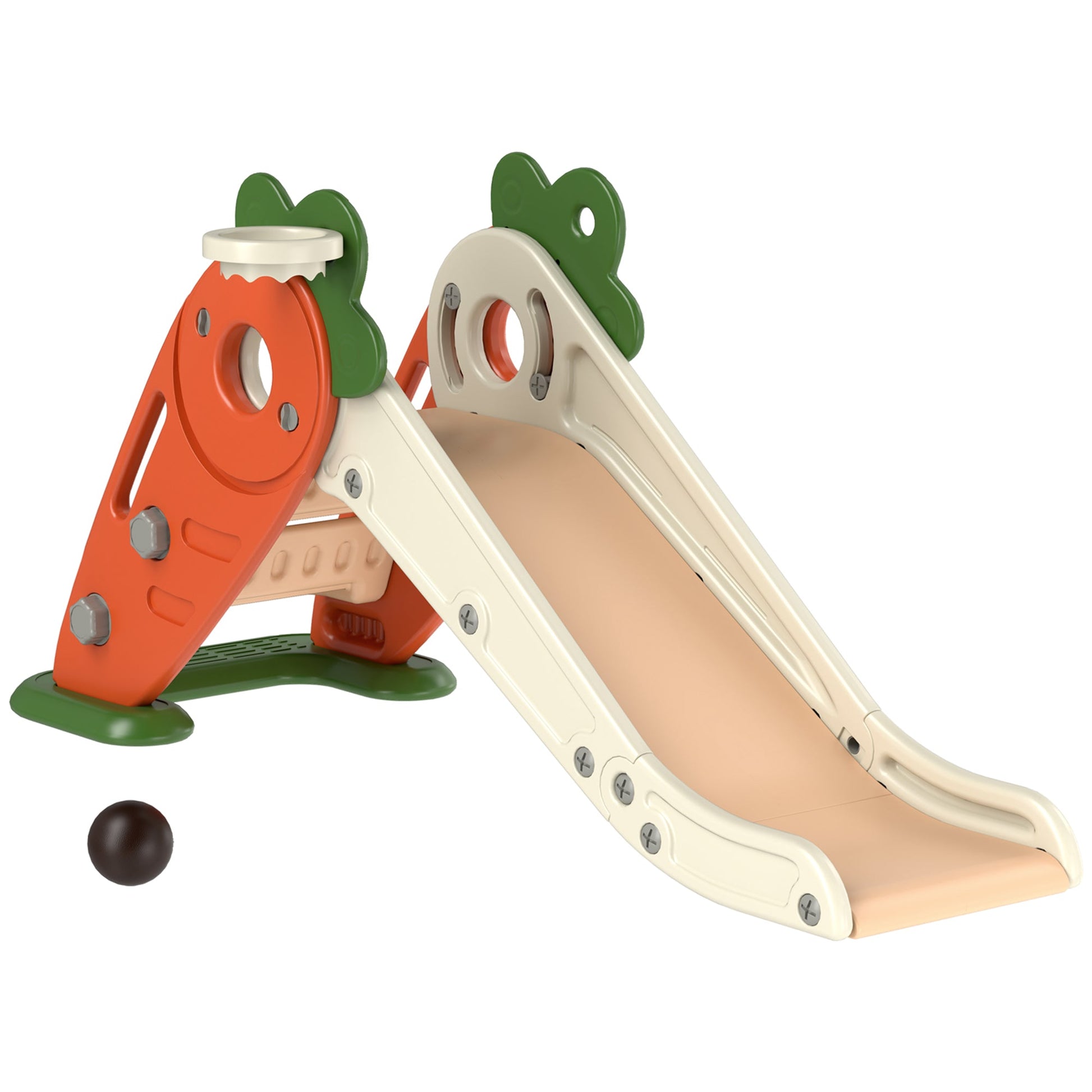 AIYAPLAY 3 in 1 Foldable Toddler Slide with Basketball Hoop, Climber, Carrot-themed, for 1-3 Years