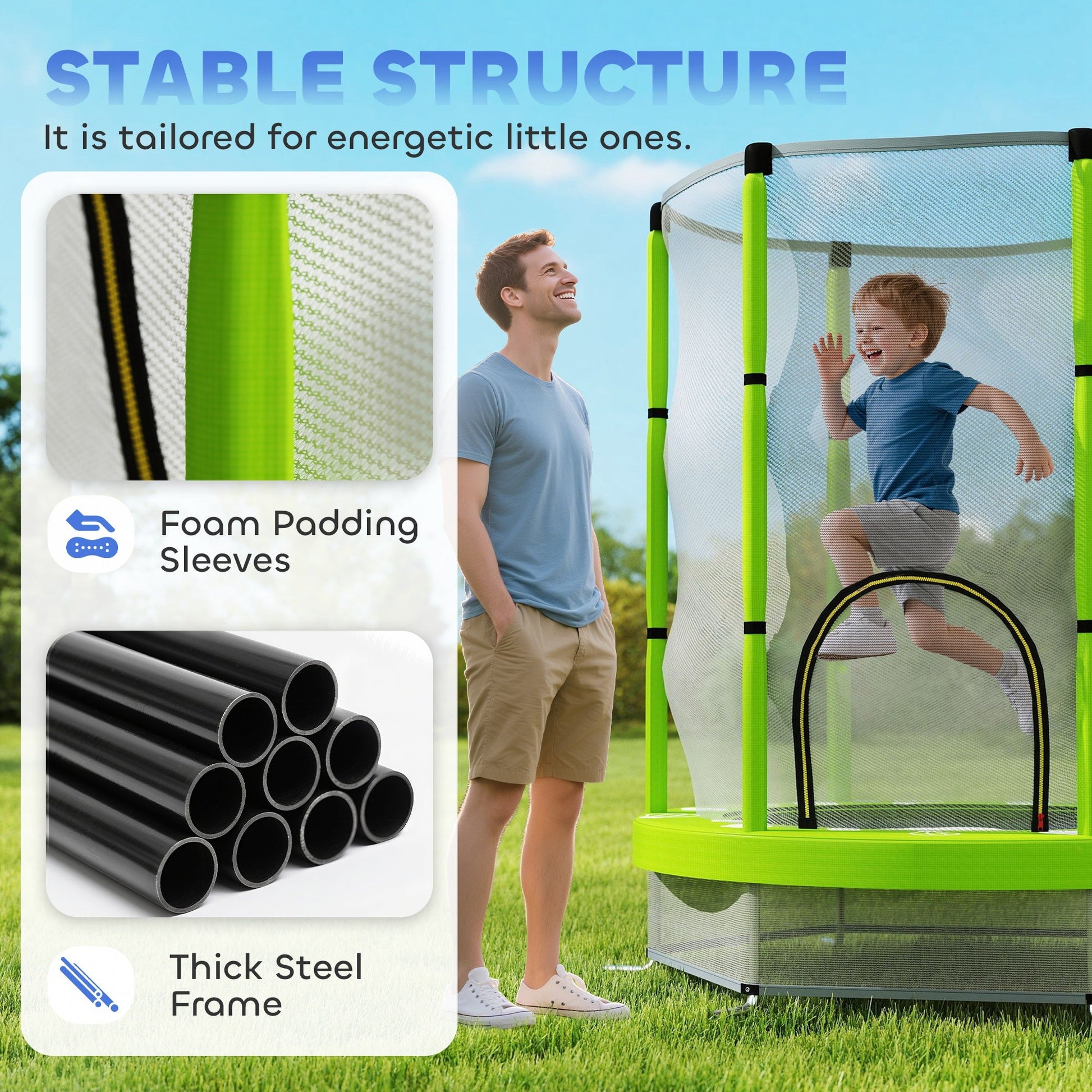 AIYAPLAY 4.6ft Toddler Trampoline w/ Safety Enclosure Net, for Indoor Outdoor Use, Ages 3-6 Years, Green