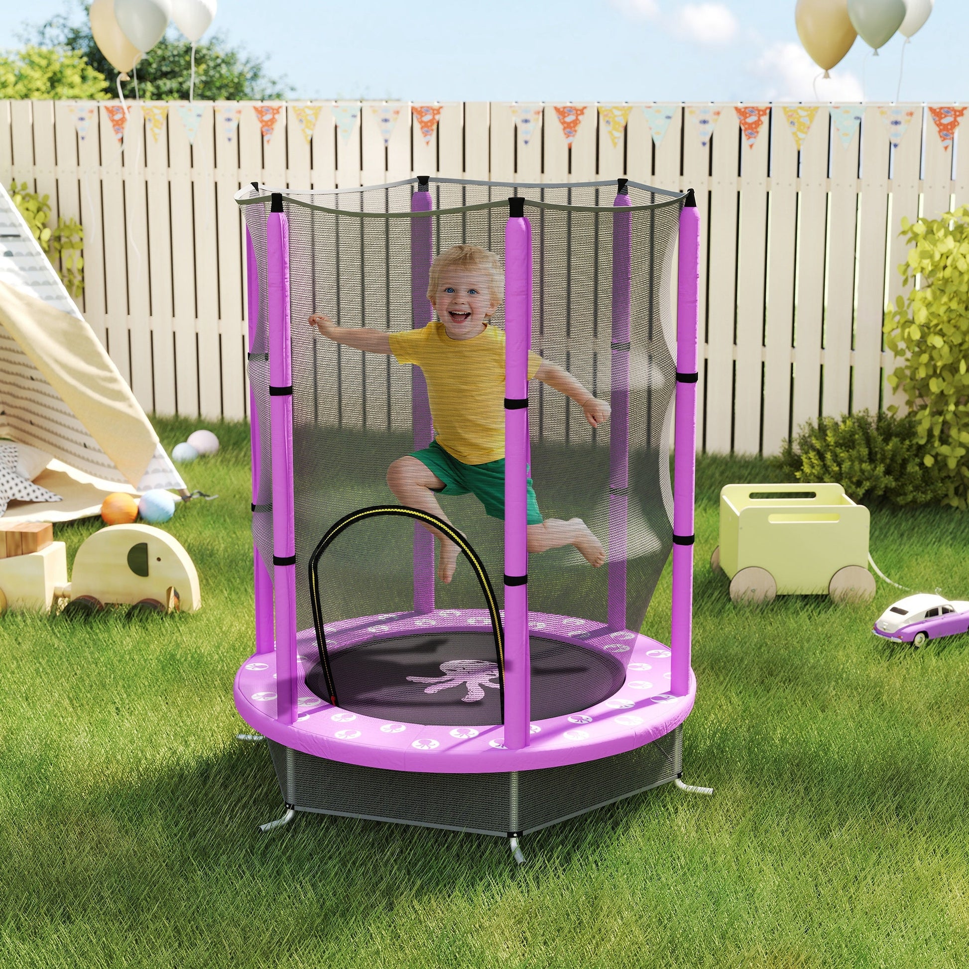 AIYAPLAY 4.6ft Toddler Trampoline w/ Safety Enclosure Net, for Indoor Outdoor Use, Ages 3-6 Years, Purple