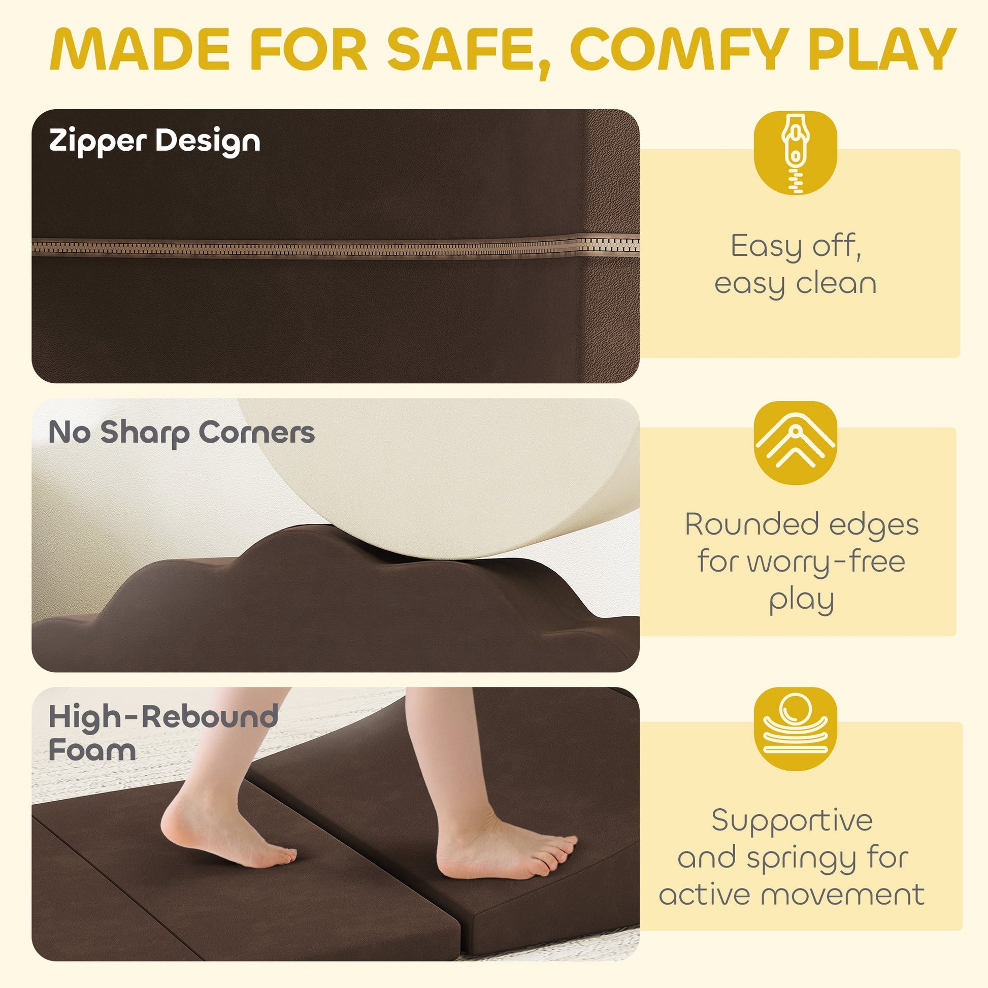 AIYAPLAY 7 Piece Kids Soft Play Set with Detachable Cover, Baby Indoor Climb and Crawl Foam Toy for Toddlers, Preschoolers, Brown