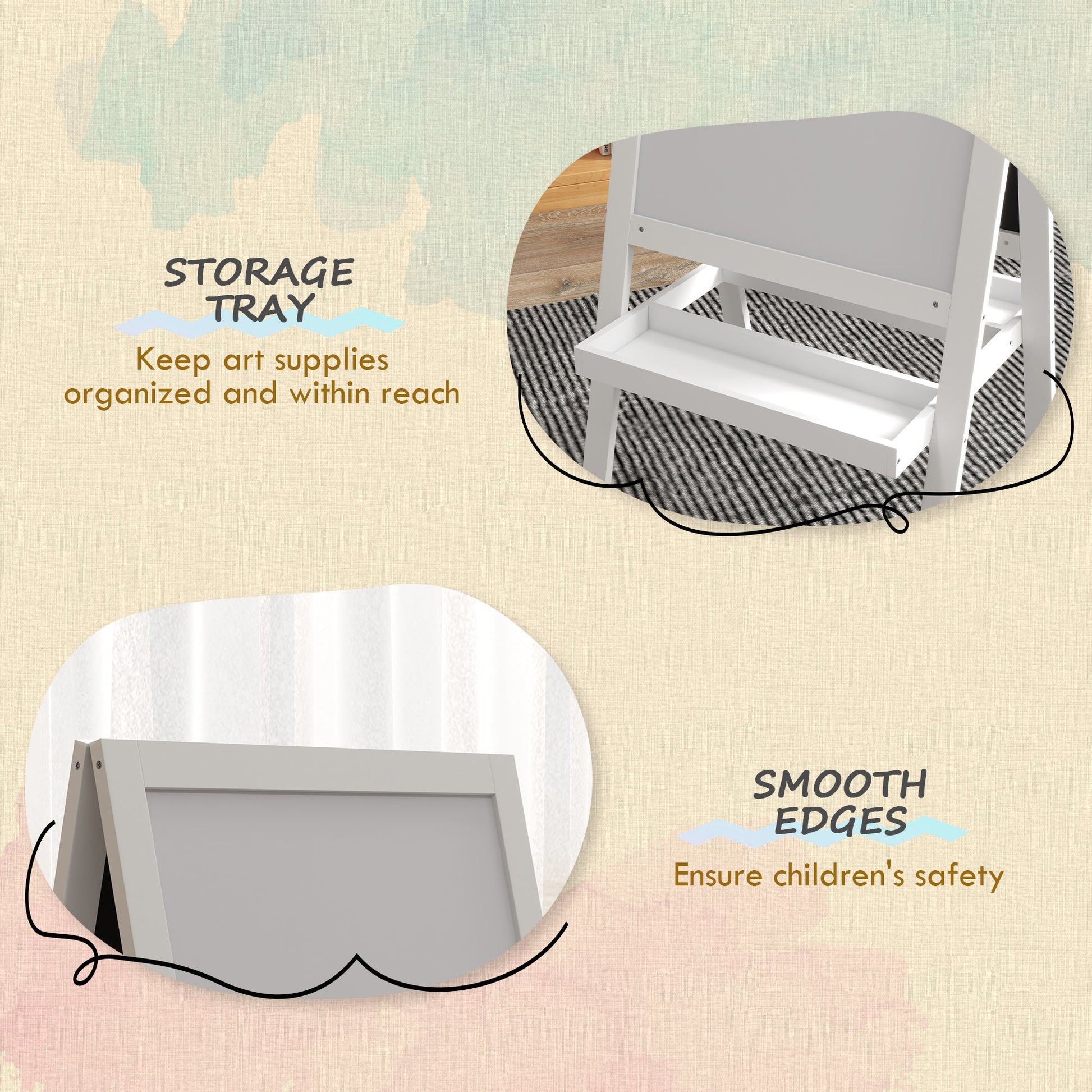 AIYAPLAY Kids Easel, Art Easel with Double Sided Whiteboard, Chalkboard, Storage, 2 in 1 Standing Easel for Toddlers 18-48 Months, White