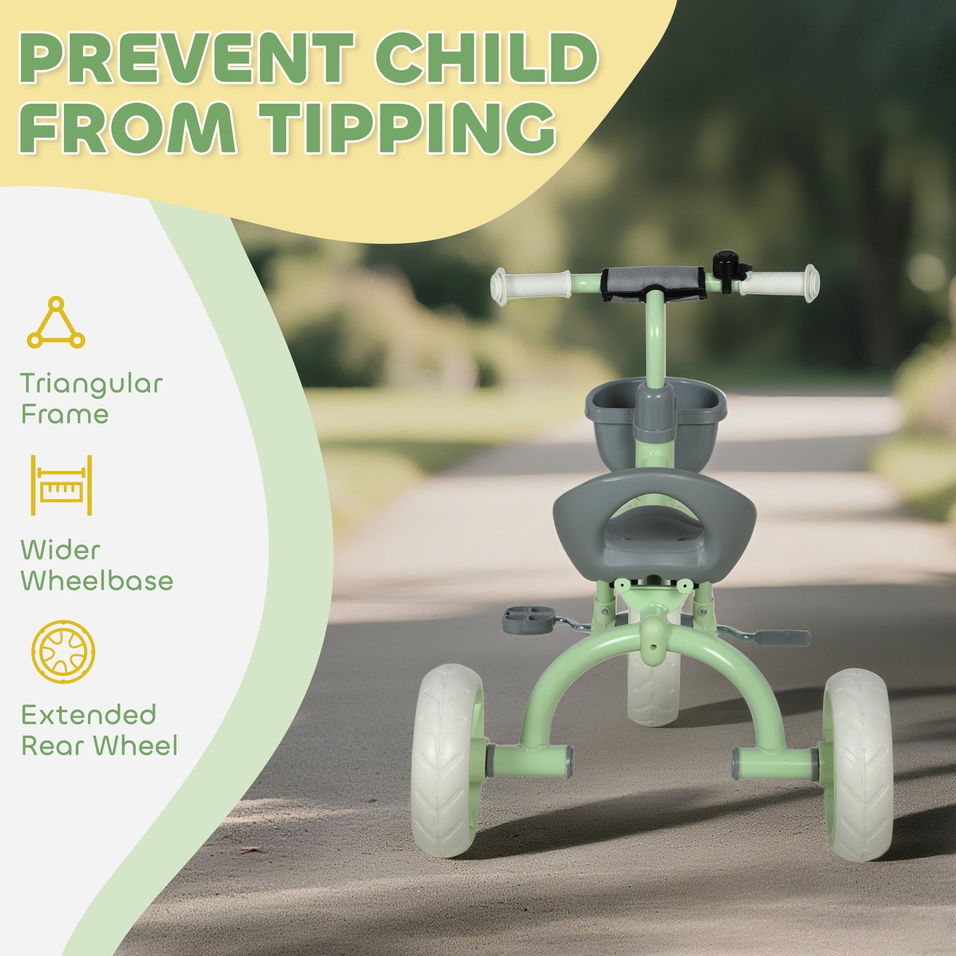 AIYAPLAY Kids Trike, Toddler Tricycle with Front Basket and EVA Wheels for Ages 2-5 Years, Indoor Outdoor for Boys Girls, Green