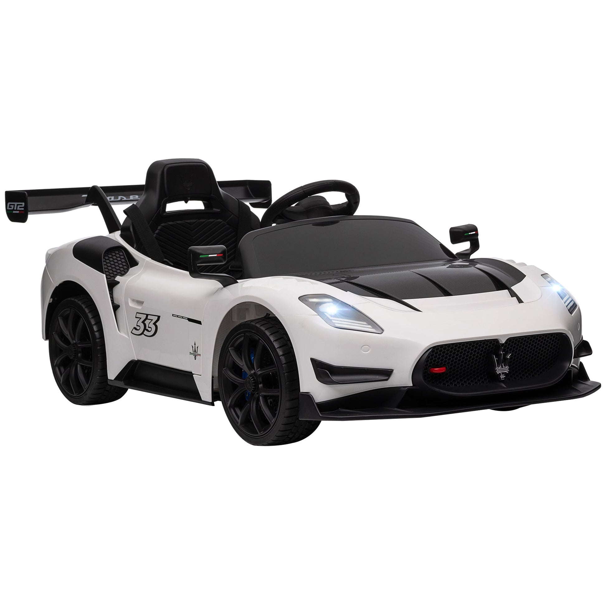 AIYAPLAY Maserati GT2 Licensed 12V Kids Electric Ride on Car with 4 Suspension Wheels, Remote Control, Music, Horn, Lights, White