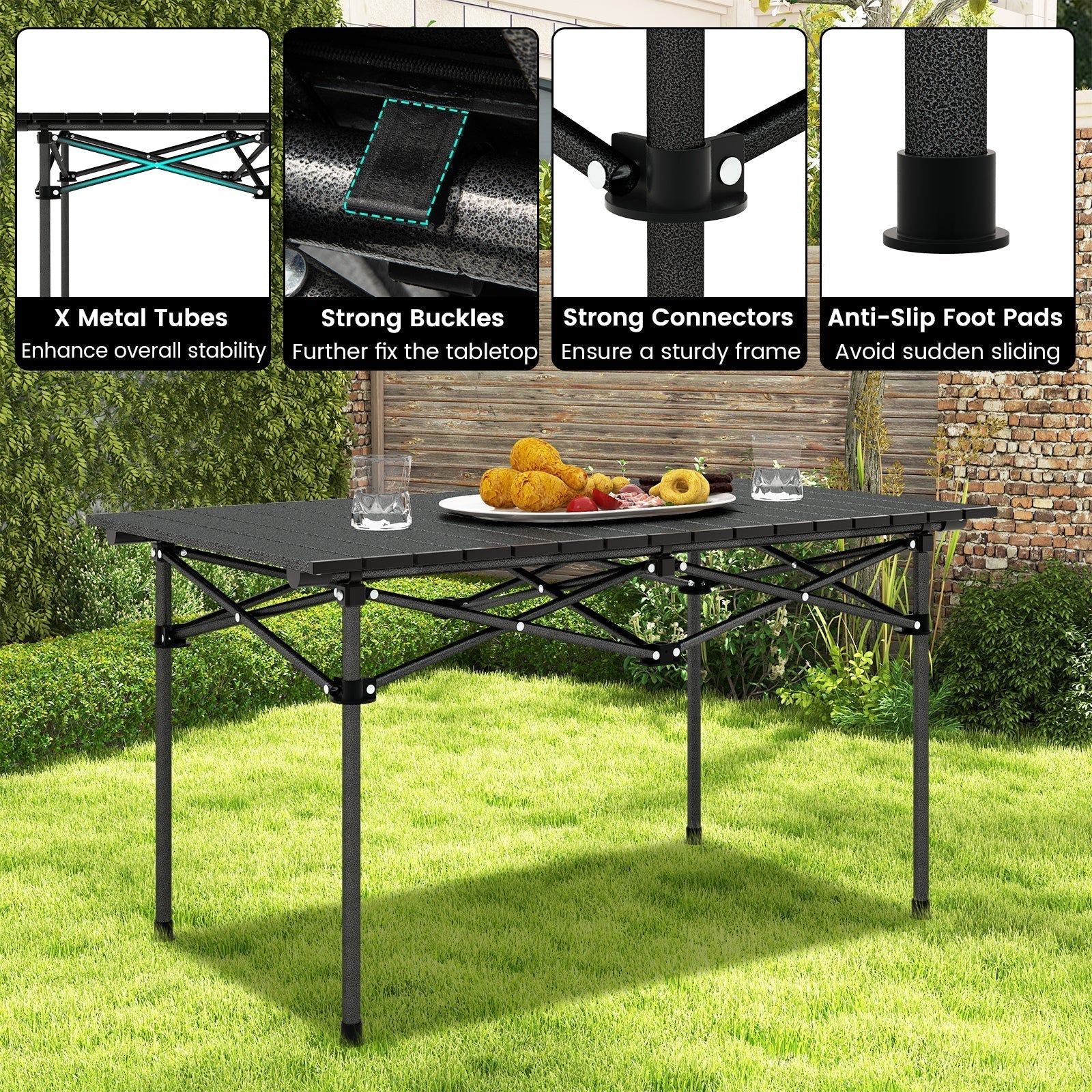 Aluminum Camping Table for 4-6 People with Carry Bag-Black