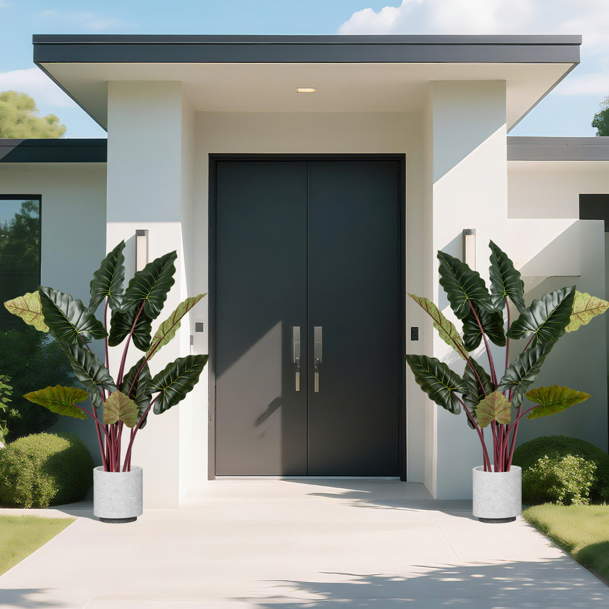 With 11 large leaves showcasing intricate ruffled edges and veins, the fake potted plant exudes realism. The weighted cement-filled planter is adorned with lifelike grass, showcasing vividness and offering reliable stability. The robust bendable rainbow taro stems and leaves are bendable, allowing you to easily reshape the artificial tree to a natural and fuller appearance. Crafted from polyester fabric, the leaves remain non-deformable and evergreen with minimal effort to maintain. Therefore, the tall faux tree is perfect for event arrangement, indoor decoration or housewarming gift. Bullet Point: Nature-inspired Appearance: The artificial potted plant boasts 11 large leaves, each with ruffled edges and vividly prominent veins, mirroring the natural growth patterns of genuine taro foliage. Plus, the plant’s authenticity is further accentuated by simulated stems and faux grass nestled in the pot. Built-to-last and Stable Design: The 160cm faux tree is securely housed in a cement-filled pot, which prevents the plant from tipping over. Moreover, the leaves are crafted from polyester fabric, which resists deformation and wear, ensuring that the plant maintains its pristine condition over time. Adjustable Leaves and Stems: Featuring embedded metal wires, the tall pre-potted fake plant allows you to spread the foliage and bend the stems carefully to suit your decorative vision. Hence, the faux decorative plant can achieve a full and natural look. Low Upkeep for Everlasting Beauty: Unlike real plants that need regular watering, sunlight, and care, the artificial house plant retains its vibrant color and vitality with ease. A simple wipe with a cloth to remove dust is ample to keep it looking fresh and lively. Multi-scene Application: Whether it's enhancing the vibe in your living room, adding a touch of green to your office, this plant is ideally suited. Furthermore, the faux rainbow taro plant serves as a thoughtful gift, perfect for housewarmings or as a centerpiece for event decorations.