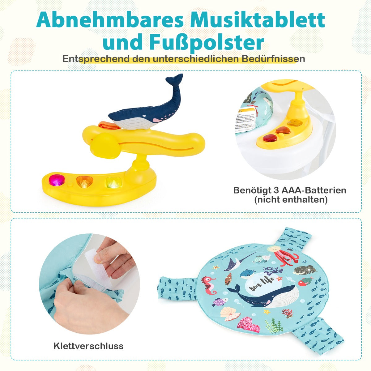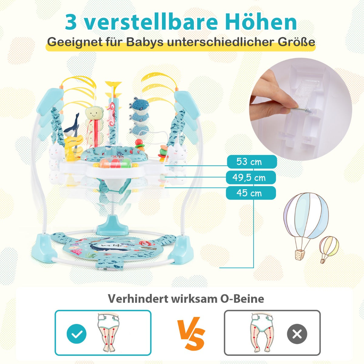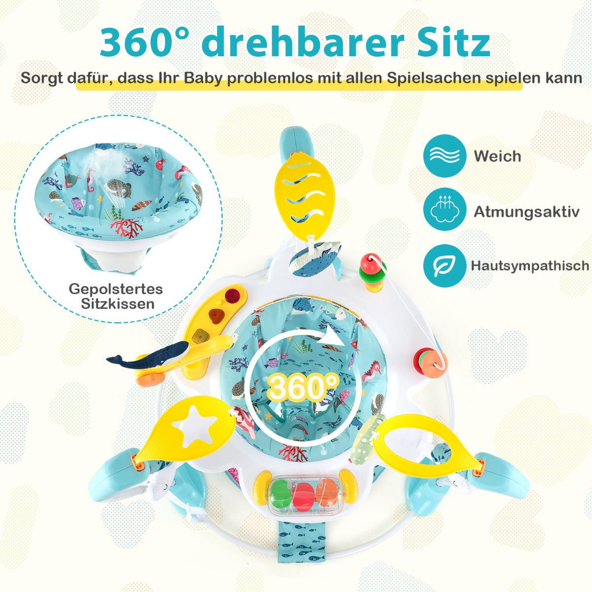 Baby Activity Center with Interactive Toys Musical Tray, Height Adjustable Baby Spinning Top Blue
