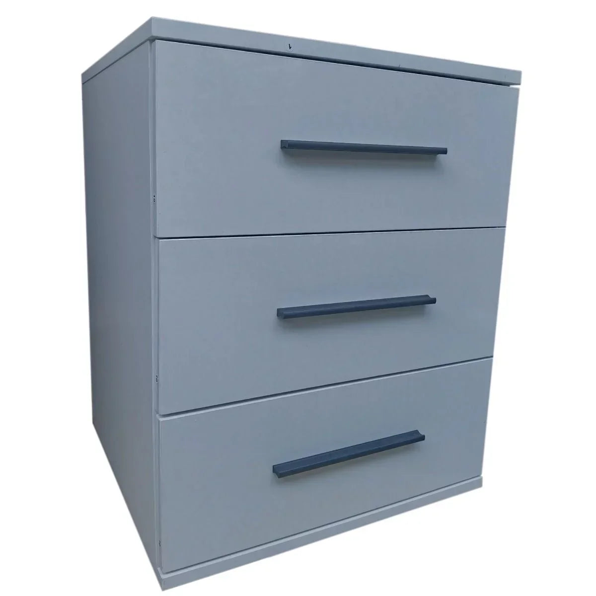 Presenting the Winstead 3 Drawer Bedside in stylish Grey, designed to elevate your bedroom aesthetics with its modern appeal. Featuring trendy metal handles, it exudes a pleasant and sophisticated charm. Its medium Grey finish adds a touch of elegance to any bedside setting. Equipped with soft-closing metal runners, the drawers offer seamless operation and durability. With ample storage space and delivered in a flat pack for convenience, this bedside table effortlessly combines style and practicality. Available in a range of colors, including Dark Green, Grey, Matt White, Dark Blue, Planked Oak, and Gloss Black, it ensures compatibility with various decor styles.