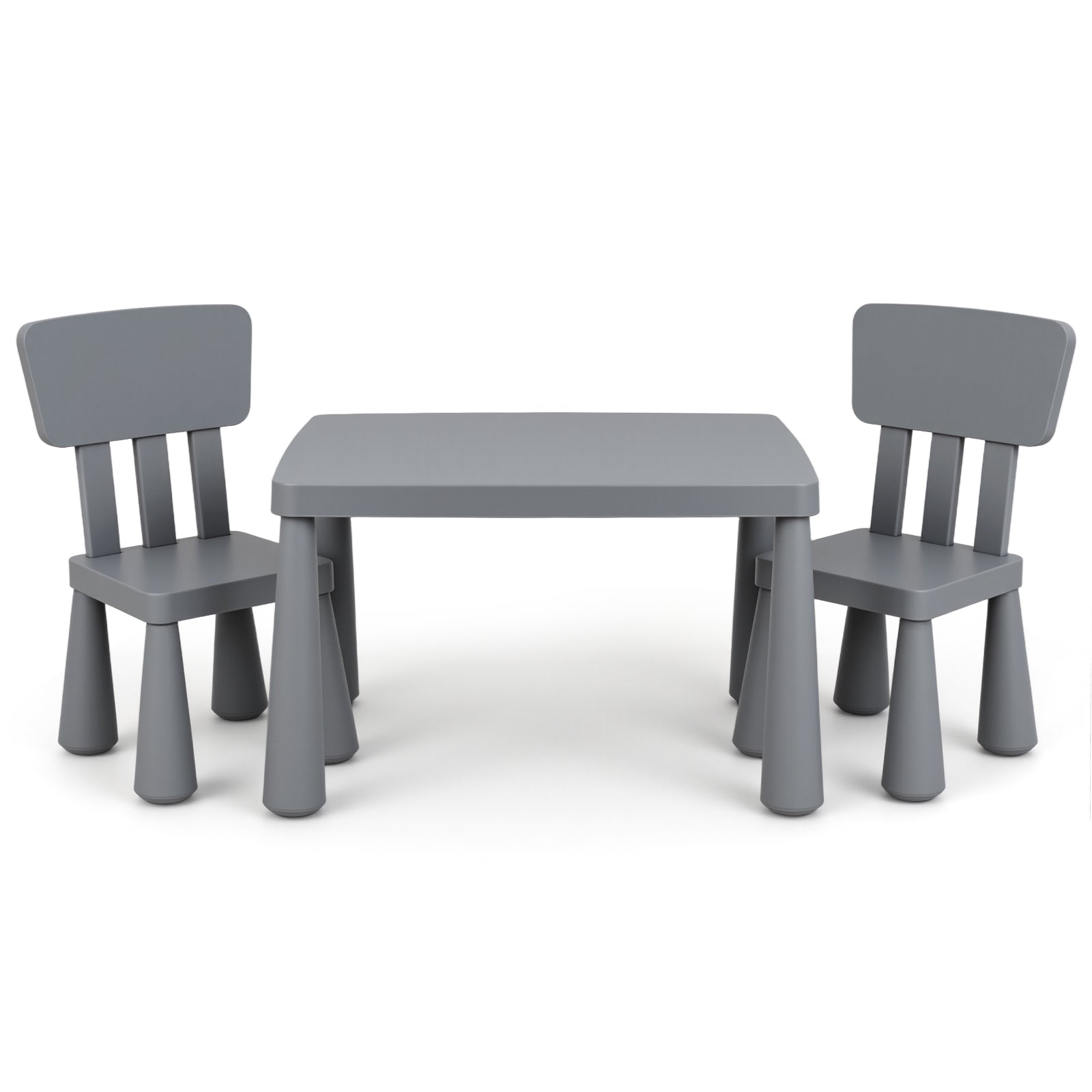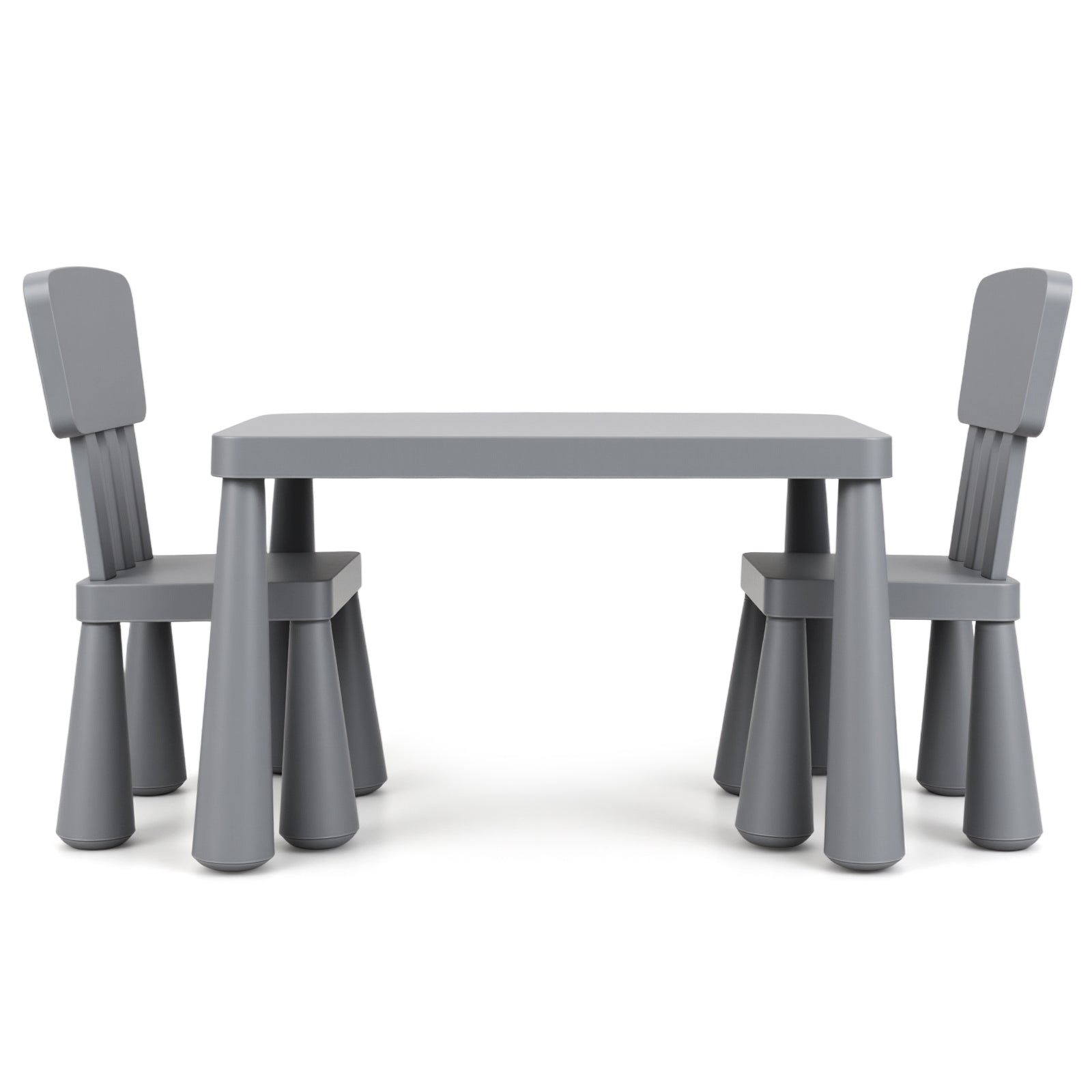Colour: Pink/ Blue/ Green/ White/ Grey Material: PP Dimension of table: 77 x 55 x 50 cm (L x W x H) Dimension of chair: 36 x 35 x 67 cm (L x W x H) Net weight of table: 4 kg Net weight of each chair: 2 kg Total gross weight: 10 kg Weight capacity of table: 50 kg Weight capacity of each chair: 50 kg Recommended age: 1 – 7 years old Box Qty:1(May vary by batch) Package includes: 1 x Table 2 x Chairs 1 x Instruction manual Installation Video